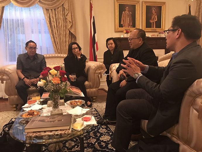 เมื่อวันที่ ๑๔ มีนาคม ๒๕๖๐ นายธานี แสงรัตน์ กงสุลใหญ่ ณ นครลอสแอนเจลิสได้เป็นเจ้าภาพเลี้ยงรับรองอาหารค่ำเพื่อเป็นเกียรติแก่คณะนักดนตรีไทยจากมูลนิธิหลวงประดิษฐ์ไพเราะ โดยมีคุณหญิงมาลินี สาคริก ประธานมูลนิธิหลวงประดิษฐ์ไพเราะ นายอานันท์ นาคคง หัวหน้าวงดนตรีกอไผ่ นายอัษฎาวุธ สาคริก และนักดนตรีไทย ดร. Helen Rees ดร. สุพีนา แอดเลอร์ และเจ้าหน้าที่สถานกงสุลใหญ่ฯ เข้าร่วม