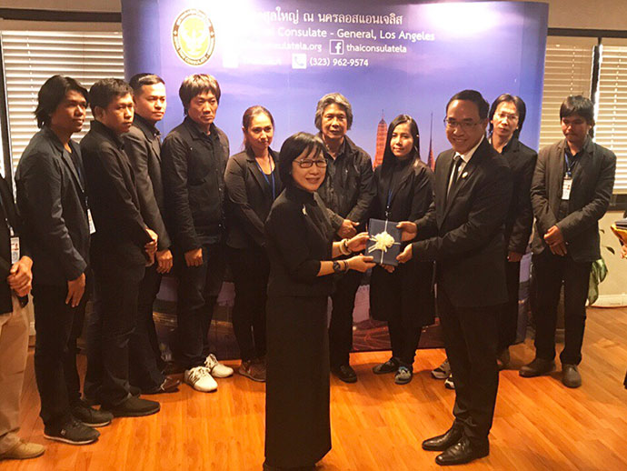 เมื่อวันที่ ๒๙ มี.ค. ๒๕๖๐ กงสุลใหญ่ ณ นครลอสแอนเจลิส ได้กล่าวเปิดงานนิทรรศการโครงการถ่ายทอดงานศิลป์ กับศิลปินแห่งชาติ เผยแพร่ผลงานศิลปะ ฯ “ครุศิลปะสร้างสรรค์งานกับศิลปินแห่งชาติ เผยแพร่ผลงานศิลปะ ครั้งที่ ๘” (Thai Artists 2017: Contemporary Artists Award) โดยได้กล่าวต้อนรับ นางสาวทัศชล เทพกำปนาท รองอธิบดีกรมส่งเสริมวัฒนธรรมและคณะศิลปินที่ได้นำผลงานศิลปะมาจัดนิทรรศการและขอบคุณสภาศิลปกรรมไทยสหรัฐอเมริกา การท่องเที่ยวแห่งประเทศไทยสำนักงานลอสแอนเจลิส สื่อมวลชนที่และผู้ที่สนใจเข้าร่วมพิธีเปิดนิทรรศการ โดยนำผลงานศิลปะระดับดีเด่นของศิลปินที่ได้รับการคัดเลือก จำนวน ๑๐ คน มาร่วมจัดแสดง ระหว่างวันที่ ๒๙ มี.ค. – ๙ เม.ย. ๒๕๖๐ เพื่อสนับสนุน พัฒนาศักยภาพ ความรู้และประสบการณ์แก่ครูศิลปะและศิลปินไทย ให้มีโอกาสแสดงเผยแพร่ผลงานของศิลปินชาวไทยให้เป็นที่ประจักษ์แก่สายตาชาวสหรัฐฯ และชาวไทยในนครลอสแอนเจลิส นอกจากนี้ โครงการนี้ยังช่วยให้ศิลปินชาวไทยได้มีโอกาสเดินทางไปเยือนพิพิธภัณฑ์ในมลรัฐต่าง ๆ ของสหรัฐฯ เพื่อเปิดโลกทัศน์และพัฒนาศักยภาพ ซึมซับความรู้ทักษะและสุนทรีย์จนสามารถสร้างสรรค์งานศิลป์ ที่ทัดเทียมนานาอารยะประเทศ
