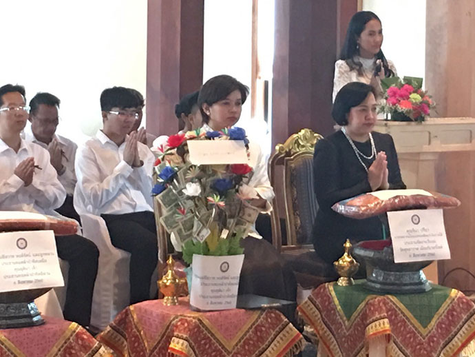 เมื่อวันที่ ๔ ส.ค. ๒๕๖๐ สถานกงสุลใหญ่ฯ ร่วมกับสภาสตรีไทยแห่งแคลิฟอร์เนียภาคใต้จัดสาธิตวิธีการประดิษฐ์ดอกไม้จันทน์เพื่อใช้ในพิธีถวายดอกไม้จันทน์แด่พระบาทสมเด็จพระปรมินทรมหาภูมิพลอดุลยเดช บรมนาถบพิตร โดยมีนางชลทิพย์ กำภู แสงรัตน์ ภริยากงสุลใหญ่ฯ ข้าราชการ หัวหน้าสำนักงานทีมประเทศไทย สภาสตรีไทยแห่งแคลิฟอร์เนียภาคใต้ สื่อมวลชน ลูกจ้างท้องถิ่น สมาคม ชมรมต่าง ๆ จำนวน ๗๐ คน เข้าร่วมรับชมการสาธิตและร่วมกันประดิษฐ์ดอกไม้จันทน์ นางศรีวงศ์ อาญาสิทธิ์ ประธานคณะกรรมไทยนิวเยียร์สงกรานต์ฯ และนางกิริยา หิรัญพลกุล ประธานสภาสตรีฯ เป็นวิทยากรพิเศษบรรยายวิธีการทำ พร้อมด้วย นางสุจิต พุ่มวิเศษ นางมาลี เหมือนรักษา และนางอาภา วังส์ไพจิตร ผู้ช่วยสาธิตวิธีประดิษฐ์ดอกไม้จันทน์ โดยประดิษฐ์เป็นดอกดารารัตน์