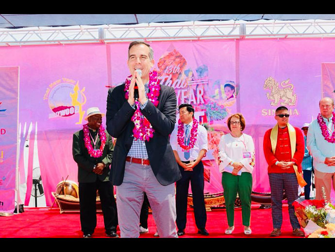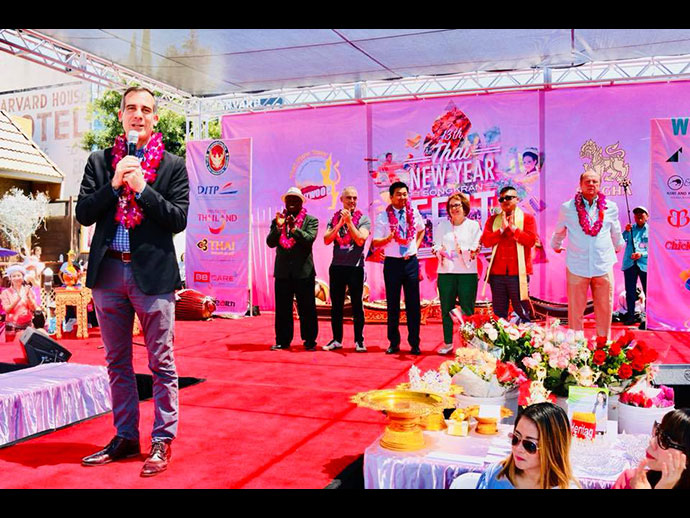 เมื่อวันที่ ๒๒ เม.ย. ๒๕๖๑ กงสุลใหญ่ ณ นครลอสแอนเจลิสได้ร่วมขบวนพาเหรดและกล่าวเปิดงานไทยนิวเยียร์สงกรานต์เฟสติวัล ๒๐๑๘ ณ ไทยทาวน์ นครลอสแอนเจลิส ซึ่งจัดขึ้นเป็นครั้งที่ ๑๓ โดยมีแขกผู้มีเกียรติร่วมพิธีเปิดงานและร่วมแสดงความยินดี อาทิ นาย Eric Garcetti นายกเทศมนตรีนครลอสแอนเจลิส นาง Laura Friedman สมาชิกสภาผู้แทนฯ มลรัฐแคลิฟอร์เนีย เขต ๔๓ นาย Mitch O'Farrell สมาชิกสภานครลอสแอนเจลิส เขต ๑๓ และนาย David Ryu สมาชิกสภานครลอสแอนเจลิส เขต ๔ รวมทั้งกงสุลใหญ่เมียนมา มาเลเซียและกงสุลใหญ่กิตติมศักดิ์กัมพูชา และผู้แทนภาครัฐและเอกชนอีกจำนวนมาก