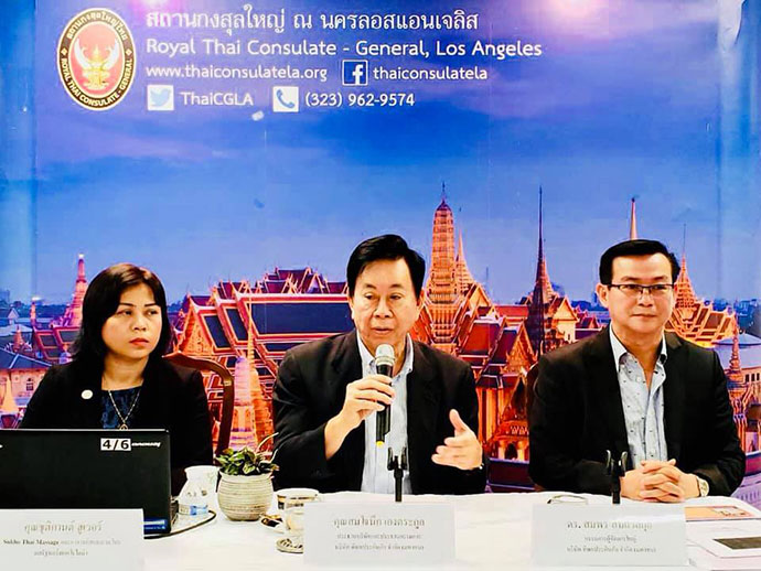 กงสุลใหญ่ฯ กล่าวเปิดงานว่า ธุรกิจนวดไทยมีความสำคัญ เพราะเป็นอาชีพหลักหนึ่งในสองของชุมชนขาวไทยในสหรัฐฯ เพราะเป็นกลุ่มที่เดือดร้อนในการประกอบอาชีพมาก สมาคมนวดไทยฯ มีความเข้มแข็งโดยได้ร่วมกับสถานกงสุลใหญ่ฯ ผลักดันทำงานกับหลายภาคส่วนรวมทั้งภาครัฐของมลรัฐแคลิฟอร์เนียและมีความคิดริเริ่มโดยเฉพาะการทำสวัสดิการประกันชีวิตแก่สมาชิกนี้ถือเป็นนวัตกรรมของขององค์กรชุมชนไทย