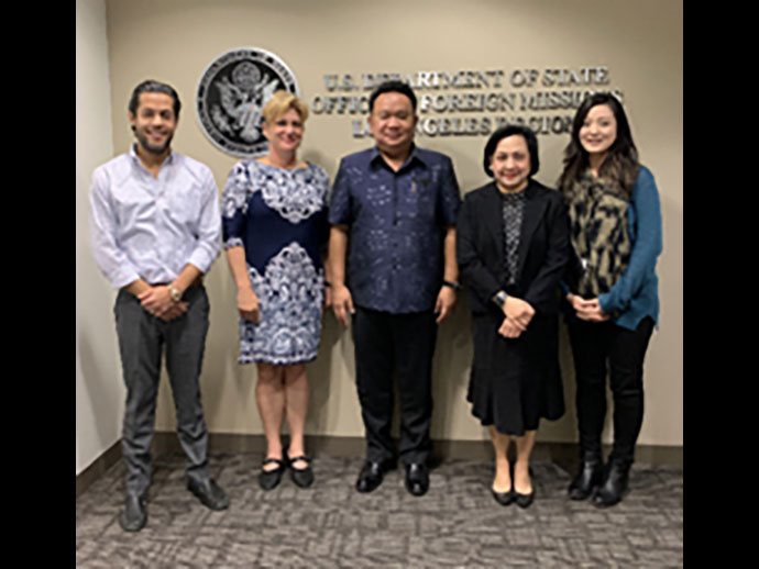 กงสุลใหญ่ ณ นครลอสแอนเจลิส และ ร.ท. หญิง กรรภิรมย์ วิชาธร กงสุล ได้เข้าพบ นาง Christina J. Hernandez ผู้อำนวยการส่วนภูมิภาคลอสแอนเจลิส (Los Angeles Regional Director) กระทรวงการต่างประเทศ สหรัฐฯ (Office of Foreign Missions, U.S. Department of State) เพื่อแนะนำตัวเนื่องในโอกาสเข้ารับหน้าที่ของ กงสุลใหญ่ฯ