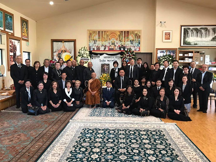 เมื่อช่วงเย็นของวันที่ 30 มีนาคม 2562 ณ วัดป่าธรรมชาติ เมืองลาพวนเต้ รัฐแคลิฟอร์เนีย นายมังกร ประทุมแก้ว กงสุลใหญ่ฯ พร้อมด้วยนางกมลภัทร ประทุมแก้วภริยา และข้าราชการสถานกงสุลใหญ่ ณ นครลอสแอนเจลิสได้เข้าร่วมงานสวดพระอภิธรรม นายวีรชัย พลาศรัย เอกอัครราชทูต ณ กรุงวอชิงตัน ซึ่งถึงแก่กรรมเมื่อวันที่ 16 มีนาคม 2562 ที่ผ่านมา