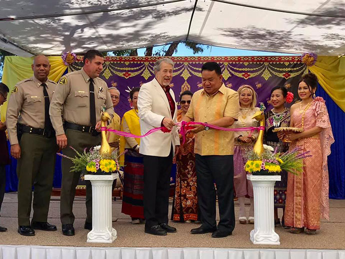 กงสุลใหญ่ฯ ได้ทำพิธีเปิดงานฯ กล่าวต้อนรับแขกผู้ร่วมงาน และขอบคุณคณะผู้ร่วมจัดงานจากวัดสมาคม และชมรมต่าง ๆ ที่เห็นถึงความสำคัญของศิลปวัฒนธรรมไทย และกล่าวต้อนรับตัวแทนจากภาครัฐ นาย Dan Holloway, Council Member of La Puente และ นาย Alex Villanueva, Sheriff of Los Angles County และนาย Timothy Murakami, Under Sheriff และผู้ช่วย ที่เข้าร่วมในงานนี้ นอกจากนี้ กงสุลใหญ่ฯ ได้นำคณะ Sheriff เยี่ยมชมวัดป่าธรรมชาติ และเข้านมัสการพระมหาเหรียญ ธนลาโภ (พระภาวนาญาณวิเทศ) เจ้าอาวาส วัดป่าธรรมชาติอีกด้วยณ วัดป่าธรรมชาติ เมือง ลา พวนเต้
