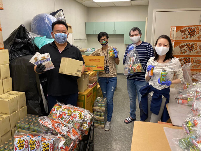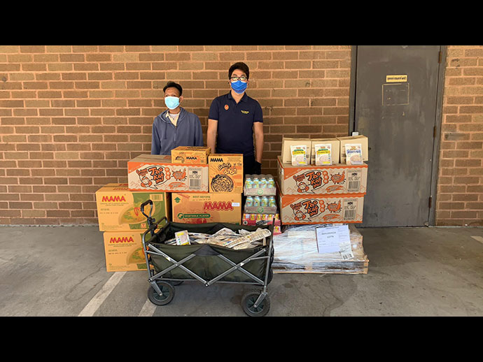 2.สนับสนุนการแจกจ่ายข้าวสารอาหารแห้งให้กับชุมชนไทยที่เดือดร้อน คนไทยที่ต้องกักตัว และผู้สูงอายุใน Senior Apartment ในรัฐต่างๆ โดยสนับสนุนงบประมาณและอาหารที่ได้รับการสนับสนุนจากบริษัทผู้ผลิตและนำเข้าอาหารชั้นนำ เช่น บริษัท ไทยเพรสซิเดนท์ฟู้ดส์ จำกัด บริษัท Rockman Corp บริษัท Golden Star Trading บริษัท Taste Nirvana บริษัท Thai Union Frozen และบริษัท เถ้าแก่น้อย ให้กับสมาคมไทยต่างๆ ที่ร่วมทำประโยชน์