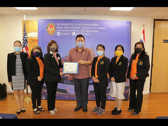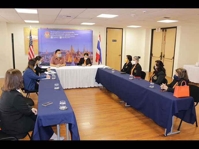 เมื่อวันที่ 5 พฤศจิกายน 2563 น.ส. แสงทอง แสงแก้ว นายกสมาคมนวดไทยและสปาแห่งสหรัฐอเมริกาคนใหม่ เข้าพบนายมังกร ประทุมแก้ว กงสุลใหญ่ ณ นครลอสแอนเจลิส เพื่อแนะนำคณะกรรมการบริหารสมาคมฯ ชุดใหม่และรายงานการจัดกิจกรรมของสมาคมฯ ในช่วงที่มีการแพร่ระบาดของโรค COVID-19 อาทิ การให้ความช่วยเหลือแก่สมาชิกในการกรอกเอกสารเพื่อขอรับความช่วยเหลือทางการเงินจากภาครัฐสหรัฐฯ และการให้คำปรึกษาแก่เจ้าของธุรกิจร้านนวดในการขอใบอนุญาตเปิดให้บริการนวดนอกอาคาร เป็นต้น จากนั้น กงสุลใหญ่ฯ ได้ให้ข้อคิดเห็นและคำแนะนำเกี่ยวกับแผนงานของสมาคมฯ ในปีงบประมาณ 2564 เพื่อให้สอดคล้องกับเป้าหมายของสถานกงสุลใหญ่ฯ ในการสนับสนุนวิชาชีพของคนไทยและฟื้นฟูธุรกิจไทยในฝั่งตะวันตกของสหรัฐฯ นอกจากนี้ กงสุลใหญ่ฯ ยังได้มอบประกาศนียบัตรให้แก่ผู้ชนะเลิศการประกวดคำขวัญภาษาไทยและภาษาอังกฤษของสมาคมฯ จำนวน 2 รางวัล