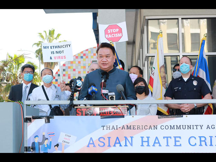 วันที่ 8 เม.ย. 2564 นายมังกร ประทุมแก้ว กงสุลใหญ่ ณ นครลอสแอนเจลิส ได้เข้าร่วมงานแถลงข่าวกิจกรรม “Anti-Asian Hate Crime Rally” ณ สถานีรถไฟใต้ดิน Hollywood/Western ย่านไทยทาวน์ นครลอสแอนเจลิส ซึ่งร่วมจัดโดยสมาคม/องค์กรไทยหลายองค์กร เพื่อแสดงพลังและจุดยืนต่อต้าน hate crime ต่อชาวอเมริกันเชื้อสายเอเชีย โดยมีผู้แทนจากหน่วยงานทั้งภาครัฐและเอกชนเข้าร่วม อาทิ สภาชิกสภาเขตนครลอสแอนเจลิส Los Angeles City Attorney, Los Angeles Police Department (LAPD), Los Angeles County Sheriff's Department (LASD) และองค์กรภาคเอกชนจากชุมชนชาวเอเชีย เป็นต้น