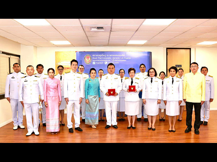 เมื่อวันที่ 9 เมษายน 2564 สถานกงสุลใหญ่ ณ นครลอสแอนเจลิส จัดพิธีรับพระราชทานเครื่องราชอิสริยาภรณ์ชั้นสายสะพายประจำปี 2563 แด่นายมังกร ประทุมแก้ว กงสุลใหญ่ ณ นครลอสแอนเจลิส และนางขวัญนภา ผิวนิล ผู้อำนวยการสำนักงานส่งเสริมการค้าในต่างประเทศ ณ นครลอสแอนเจลิส ผู้ได้รับพระราชทานเครื่องราชอิสริยาภรณ์ชั้นประถมาภรณ์ช้างเผือก โดยมีหัวหน้าทีมประเทศไทย ข้าราชการ เจ้าหน้าที่ และคู่สมรสเข้าร่วมพิธีฯ