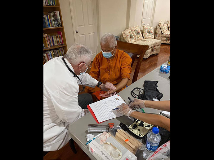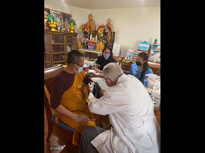 เมื่อวันศุกร์ที่ 14 พฤษภาคม 2564 โดยมีคุณหมอแดน โบลท์ตั้น (Dr. Dan Bolton) คุณหมอจิตอาสา มาช่วยตรวจสุขภาพพระสงฆ์จำนวน 8 รูปที่วัดศรีเจริญธรรม รวมถึงผู้สูงอายุบางส่วน นอกจากนี้สมาคมฯ ได้สำรวจและเตรียมความพร้อมด้านเอกสารเพื่อยื่นขอประกันสุขภาพให้พระสงฆ์ในโอกาสต่อไป