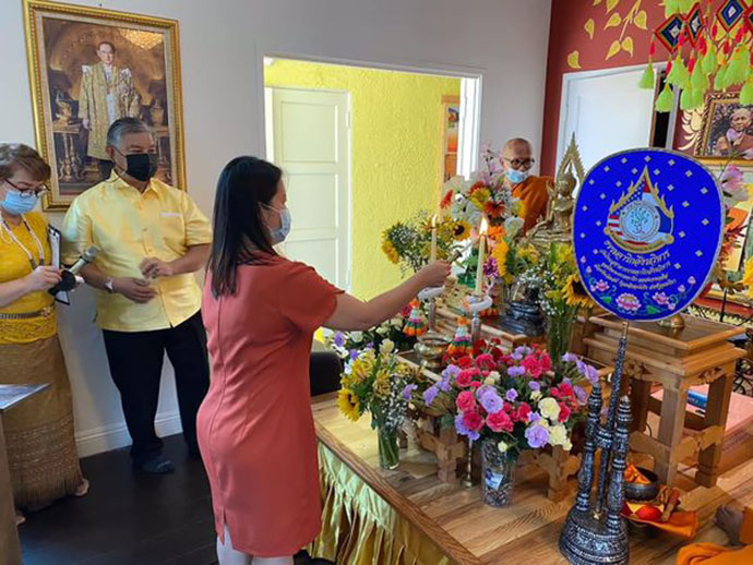 เมื่อวันที่ 15 ก.ค. 2564 กงสุลพีร์ภากรณณ์ เนียมใย เป็นผู้แทนกงสุลใหญ่ ณ นครลอสแอนเจลิส เข้าร่วมพิธีเปิดโครงการ “ธรรมศึกษา พัฒนาชีวิต พิชิตโรคซึมเศร้า” จัดโดยสมาคมไทยแห่งแคลิฟอร์เนียภาคใต้และวัดไทยสุชาดาธรรมจาริกสังฆวิหาร เพื่อฟื้นฟูและพัฒนาจิตใจของชุมชนไทย โดยตลอดพรรษานี้จะจัดกิจกรรมต่างๆ อาทิ สวดมนต์ เจริญสติภาวนา สาธยายพระไตรปิฏก เรียนธรรมะและสนทนาธรรม ทุกวันพฤหัสบดี เวลา 18.00-20.00 น. รวม 15 ครั้ง ณ วัดไทยสุชาดาธรรมจาริกสังฆวิหาร
