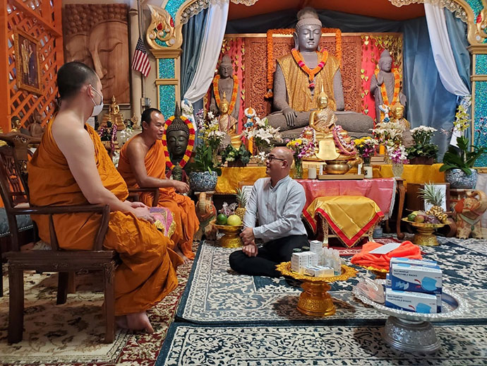 ในโอกาสเดียวกันนี้ นายต่อ ศรลัมพ์ กงสุลใหญ่ ณ นครลอสแอนเจลิส ได้ถวายเครื่องไทยธรรม เวชภัณฑ์ และเจลแอลกอฮอล์แด่พระภิกษุสงฆ์ที่จำพรรษา ณ วัดพุทธจักรมงคลวราราม และวัดธรรมวิหารฮาวาย รวมถึงพบปะชุมชนไทยเพื่อตอบข้อซักถามเกี่ยวกับงานบริการด้านกงสุลด้วย