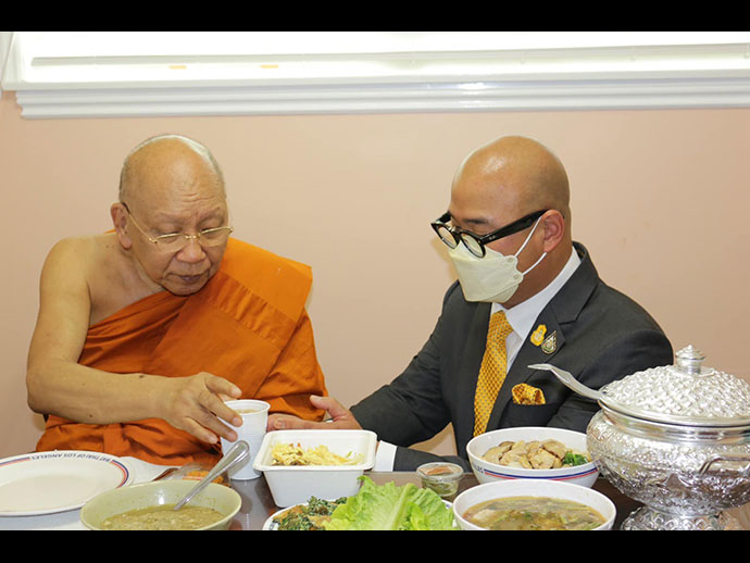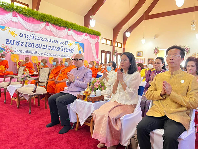 เมื่อวันที่ 12 มิถุนายน 2565 กงสุลใหญ่ฯ พร้อมด้วยภริยา และข้าราชการสถานกงสุลใหญ่ฯ ร่วมงานทำบุญอายุวัฒนมงคล 90 ปี พระเทพมงคลวิเทศ และสมโภชวัดไทยลอสแองเจลิสครบ 50 ปี ร่วมกับชุมชนไทย ณ วัดไทยลอสแองเจลิส ซึ่งมีเจ้าประคุณสมเด็จพระมหาธีราจารย์ ประธานสำนักงานผู้กำกับพระธรรมทูตไทยไปต่างประเทศ กรรมการมหาเถรสมาคม (มส.) เจ้าอาวาสวัดพระเชตุพนวิมลมังคลารามราชวรมหาวิหาร เข้าร่วมด้วย โดยในช่วงเช้ามีพิธีทำบุญตักบาตร พิธีถวายมุทิตาสักการะพระเดชพระคุณพระเทพมงคลวิเทศ การเจริญพระพุทธมนต์ และถวายภัตตาหารเพลแด่พระสงฆ์ และในช่วงบ่ายมีการแสดงพระธรรมเทศนา โดยพระพรหมบัณฑิต กรรมการเถรสมาคม เจ้าอาวาสวัดประยูรวงศาวาส พิธีทักษิณานุปทานแด่พระสงฆ์ และพิธีสงฆ์น้ำพระเทพมงคลวิเทศ