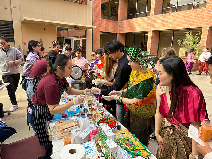 เมื่อวันเสาร์ที่ 3 มิถุนายน 2566 สถานกงสุลใหญ่ ณ นครลอสแอนเจลิส ร่วมกับภาควิชามานุษยดนตรีวิทยา มหาวิทยาลัย UCLA จัดกิจกรรม Thai Spring Dessert Workshop ณ ลานด้านหลังอาคาร Schoenberg Hall, UCLA เปิดประสบการณ์เรียนรู้เกี่ยวกับการทำขนมไทยและทำความรู้จักกับผลิตภัณฑ์อาหารจากประเทศไทย เพื่อส่งเสริมความนิยมของขนมไทยและผลิตภัณฑ์อาหารจากประเทศไทยในกลุ่มคนรุ่นใหม่ (Gen-Z) อันเป็นส่วนหนึ่งของโครงการไทยสู่ครัวโลก
