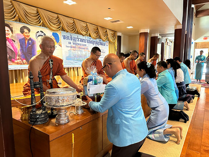 เมื่อวันที่ 13 ส.ค. 66 สถานกงสุลใหญ่ ณ นครลอสแอนเจลิสได้ร่วมกับวัดสุทธาวาส เมืองริเวอร์ไซด์ จัดพิธี ถวายเครื่องราชสักการะและวางพานพุ่ม และพิธีตักบาตรและทำบุญถวายพระราชกุศลเนื่องในโอกาส วันเฉลิมพระชนมพรรษาสมเด็จพระนางเจ้าสิริกิติ์ พระบรมราชินีนาถ พระบรมราชชนนีพันปีหลวง 12 สิงหาคม 2566 ณ พระอุโบสถ วัดสุทธาวาส เมืองริเวอร์ไซด์