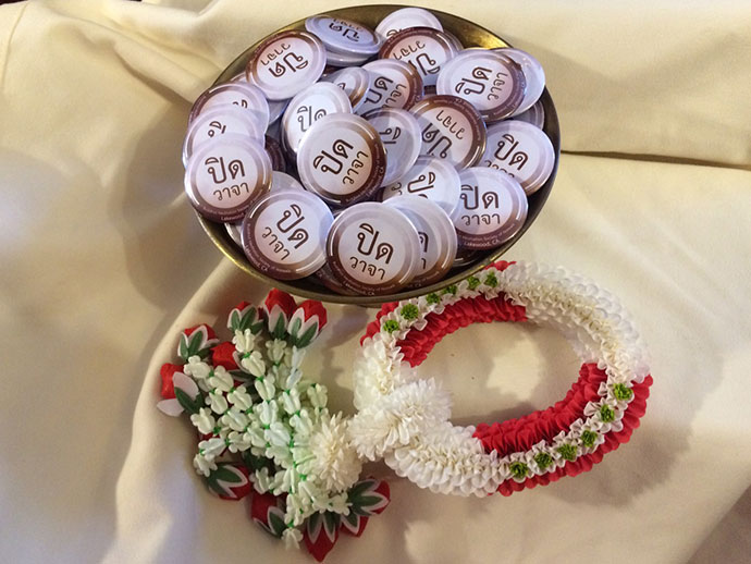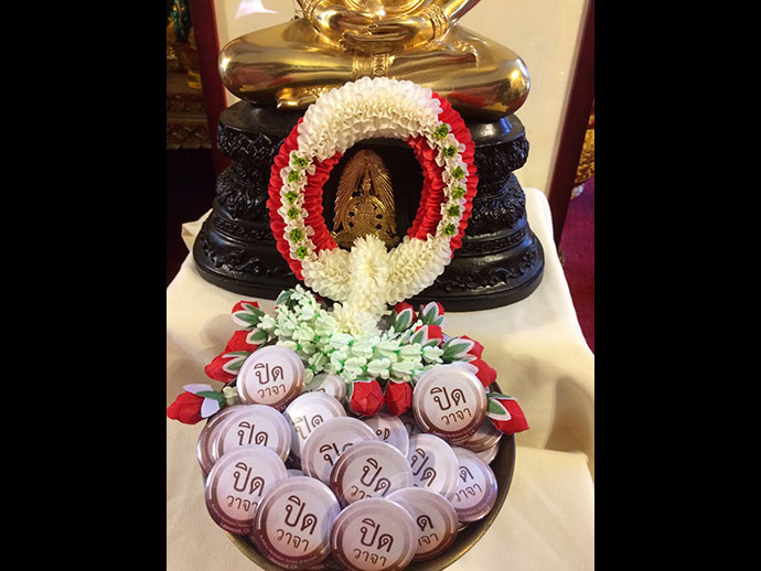 เมื่อสัปดาห์ที่ผ่านมา ญาติโยมศิษย์วัดทุ่งเศรษฐี เดินทางมาจากเมื่องไทย ได้ทำสติ๊กเก้อร์มาฝาก กลุ่มผู้สมาทานถืออุโบสถศีล ตลอดฤดูกาลเข้าพรรษา โดยก่อนทำสำรวจความเห็นกับผู้เข้าปฏิบัติ เนกขัมมจารินีเรียบร้อยดี และได้ทำสติ๊กเก้อร์ออกมาอย่างสวย ทุกคนในกลุ่มผู้ปฏิบัติธรรมยิ้มรับ Happy มีความสุข ดังนั้นใครได้ไปปฏิบัติธรรมร่วมกัน อย่าลืมขอเพื่อเป็นสัญลักษณ์ว่าเราได้ร่วมโครงการปฏิบัติธรรมกันมาแล้ว เอาหละ... ทีนี้มาทำความเข้าใจความหมายคำว่า "ปิดวาจา"