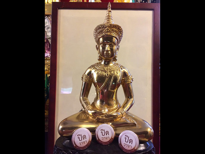 บรรยากาศในการปฏิบัติธรรม อารมณ์กัมมัฏฐาน การเจริญสติภาวนา สมาธิภาวนา ปัญญาภาวนา ให้เจริญในใจอยู่ ปฏิบัติตามอยู่ บางทีการติดสติ๊กเกอร์สัญลักษณ์ "ปิดวาจา" ช่วยเป็นเครื่องเตือนสติในบุญ ป้องกันไม่ให้อารมณ์กัมมัฏฐานรั่วฟุ้งไปไกล มองเห็นสติ๊กเกอร์ "ปิดวาจาปั๊บ" ก็สามารถดึงสติดึงอารมณ์กลับมาภาวนาต่อไป นี้เรียกว่ากลุ่มของผู้มีกุศลจิต ไม่กล่าวหาว่าร้ายต่อใครๆ เขา ไม่หลงผิดคิดอิจฉาริษยาต่อใครๆ เขา ไม่โมโหโกรธาใครๆ เขา ทว่า "ปิดวาจา ศึกษาใจตนและคนอื่น" คือรู้ว่าใจเขาคิดเป็นอย่างไร ใจเราคิดเป็นอย่างไร อย่างรอบคอบสำรวมระวังในบุญในบาป เป็นต้นฯ