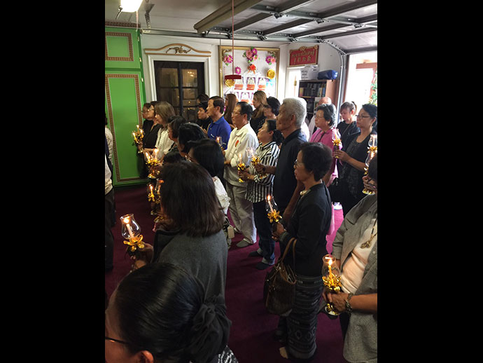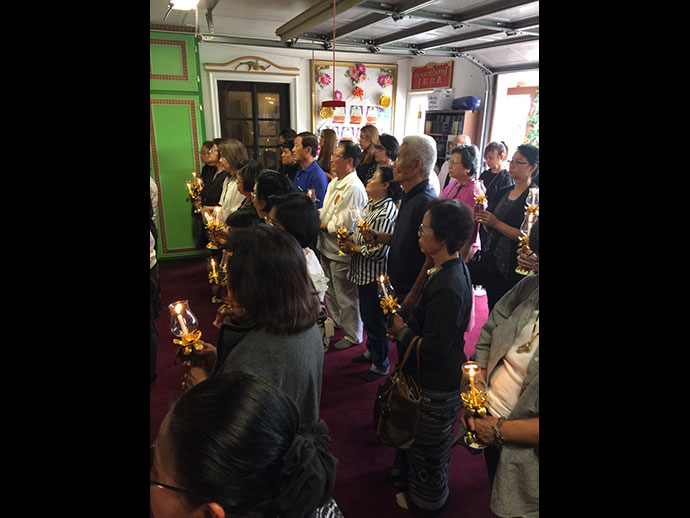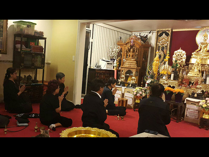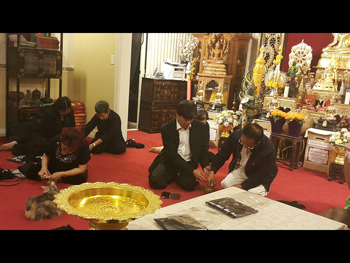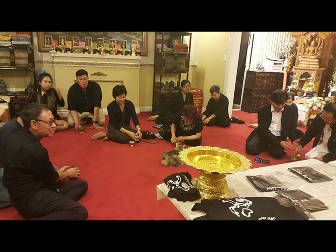 อิมินา กตปุญญวเสนะ ด้วยอำนาจแห่งทักษิณานุปทานปัตติทานมัย กุศลทั้งปวงที่คณะพสกนิกรชาวไทย และทุกคนทุกท่านที่เป็นเจ้าภาพได้บำเพ็ญอุทิศแล้วนี้ ขอจงเป็นพลวปัจจัยให้บังเกิดเป็นอิฏฐคุณ มนุญผลวิบากสมบัติอันเป็นทิพย์ แด่ดวงพระวิญญาณของ องค์พระบาทสมเด็จพระปรมินทรมหาภูมิพลอดุลยเดช มหิตลาธิเบศรรามาธิบดี จักรีนฤบดินทร สยามินทราธิราช บรมนาถบพิตร"
