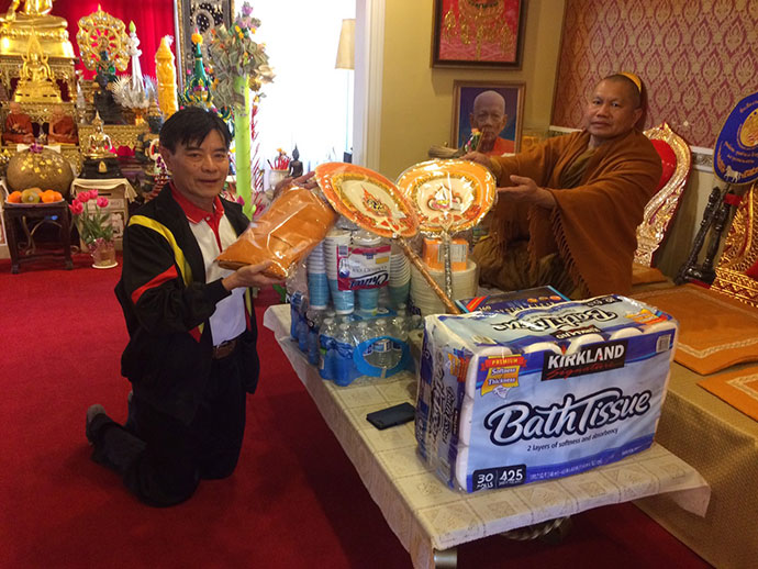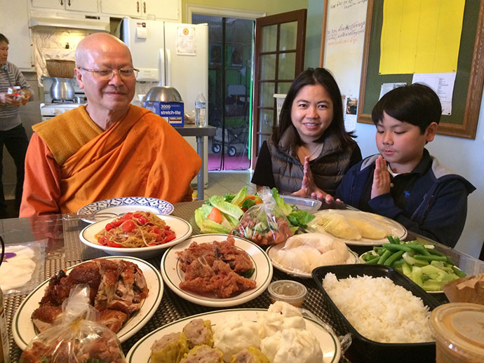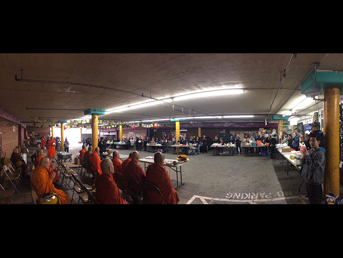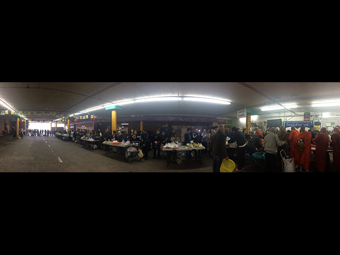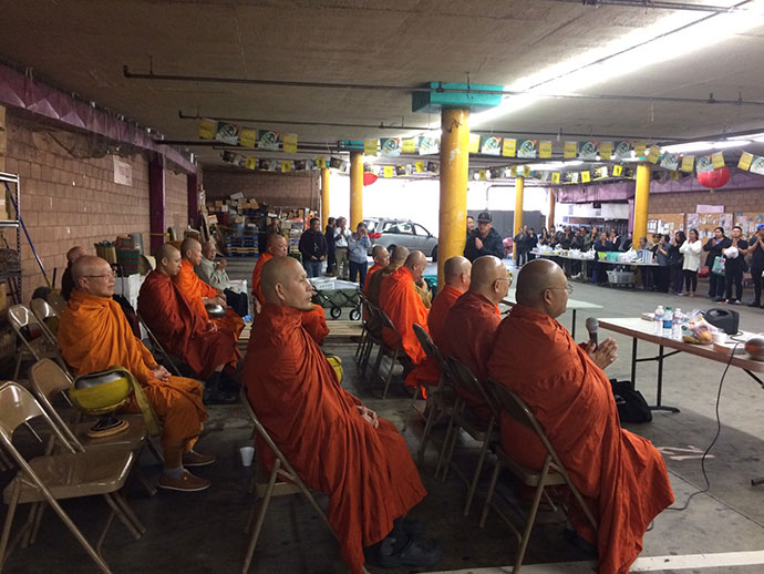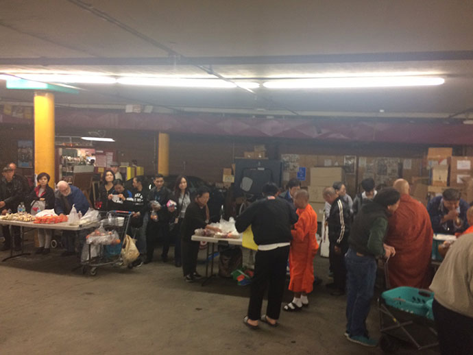 อาตมาก็ขอความสุขสวัสดี ความเจริญรุ่งเรืองความร่มเย็นเป็นสุข จงมีแด่ทุกท่านทุกคน ที่มีโอกาสไปใส่บาตรกัน วันนี้เป็นวันประวัติศาสตร์ของพี่น้องชาวไทยชาวพุทธที่อยู่ บริเวณเมืองลอสแอนเจลิส ได้รวมตัวพร้อมใจมาใส่บาตรใน "วันมาฆบูชา" อย่างมากมายล้นหลาม วันนี้ท่านพระอาจารย์ ดร. พระมหาจรรยา สุทฺธิญาโณ วัดพุทธะปัญญา เมืองโพโมน่า เป็นผู้ให้ธรรม กล่าวธรรม และได้มอบหมายให้อาตมาได้บันทึกภาพประวัติศาสตร์วันนี้ไว้ เพื่อประกาศว่าพระพุทธศาสนาของเรามั่นคงในลอสแอนเจลิสได้ด้วยสองมือของเราทุกคนที่ช่วยกันพัฒนาศาสนา สาธุ สาธุ