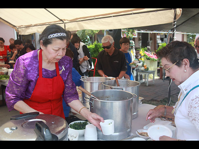 1) การทำบุญตักบาตร การนำอาหารไปถวายพระที่วัดเพื่อสืบทอด และทำนุบำรุงพระพุทธ ศาสนา และเพื่อกล่อมเกลาจิตใจให้รู้จักการให้ เสียสละ โดยมิได้มุ่งหวังสิ่งใดตอบแทน