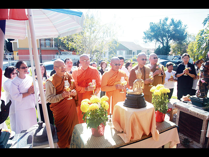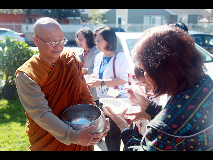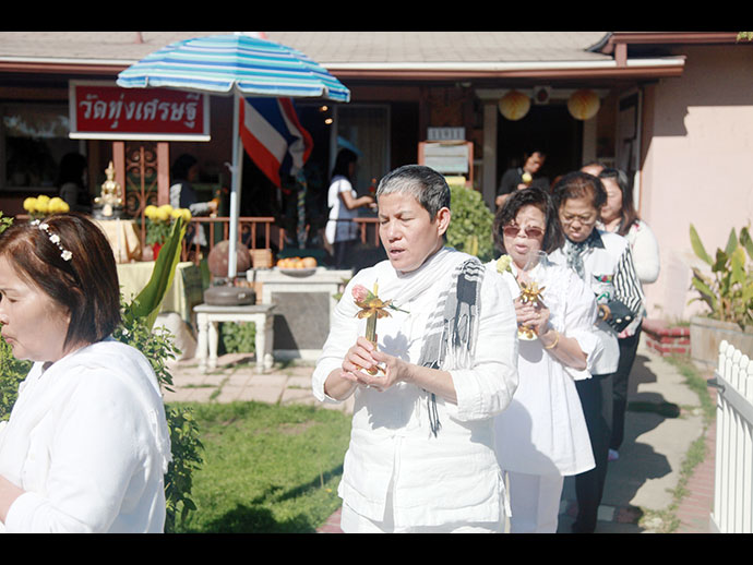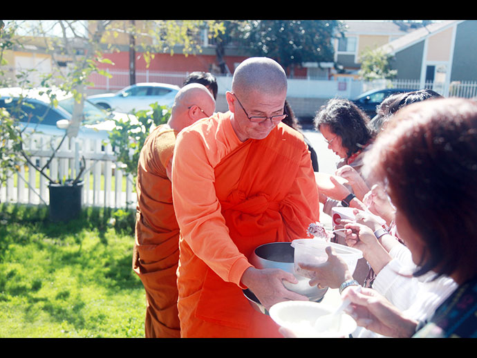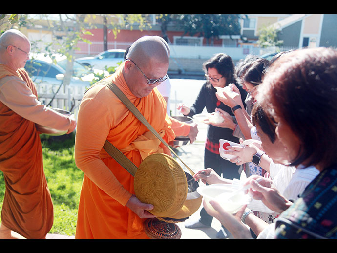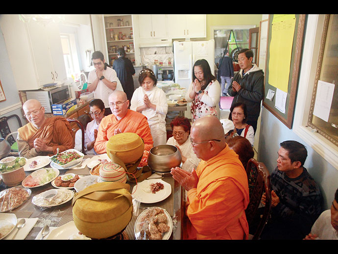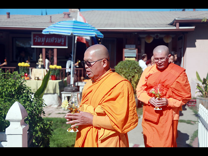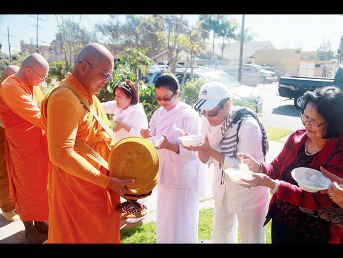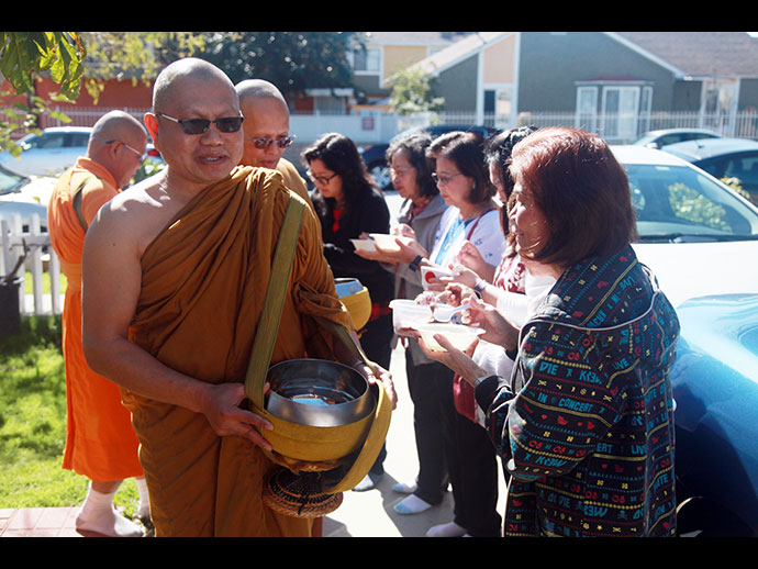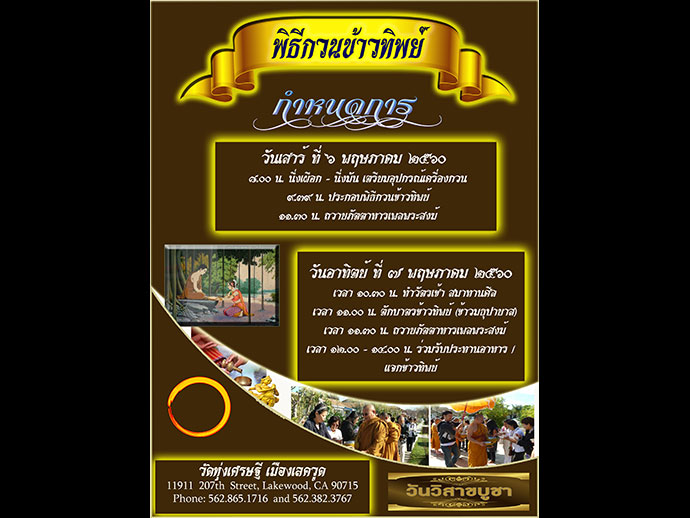 ญาติโยมท่านผู้มีจิตใสใจศรัทธา สนใจไปร่วมงานบุญครั้งนี้ ประสงค์ถวายถั่วงา ลูกเดือย ข้าวฟ่าง ข้าวเม่า เผือก มัน ผลไม้นานาชนิด และนมเนย เป็นต้นนั้น ก็ติดต่อไปทางวัด (562) 865-1716 (562) 382 - 3767 เพื่อมิให้ซ้ำกัน ปีที่แล้วกวนไป 2 กระทะใหญ่ใบบัว เพราะเป็นของแปลกใหม่ในอเมริกาจึงไม่พอแจกจ่าย ปีนี้หลายท่านคอยฟังข่าวกำหนดการ เพื่อไปร่วมบุญร่วมทาน วันเสาร์ วันกวน วันอทิตย์ วันกิน ท่านว่างกันวันไหน ให้กำหนดใจไปร่วมช่วยบุญช่วยงานโดยพร้อมเพียงกัน เทอญ จำเริญพร