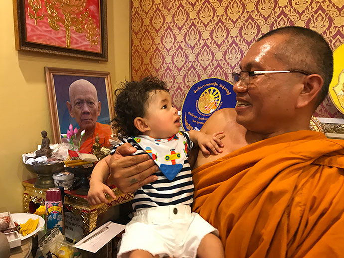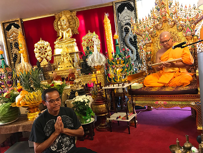 สนามหลังวัดทุ่งเศรษฐี 11911 207th Street, Lakewood, CA 90715 (โทร 562-865-1716) ขออำนาจคุณพระศรีรัตนตรัย และสิ่งศักดิ์สิทธิ์ทั้งหลายในสากลโลก คุ้มครองให้ท่านและครอบครัว จงประสบแต่ความสุขความเจริญ ด้วยจตุรพิธพรชัยทั้ง 4 ประการ คือ อายุ วรรณะ สุขะ พละ และ ปฏิภาณธนสารสมบัติ ทุกประการเทอญ สาธ รูปขอจำเริญพร