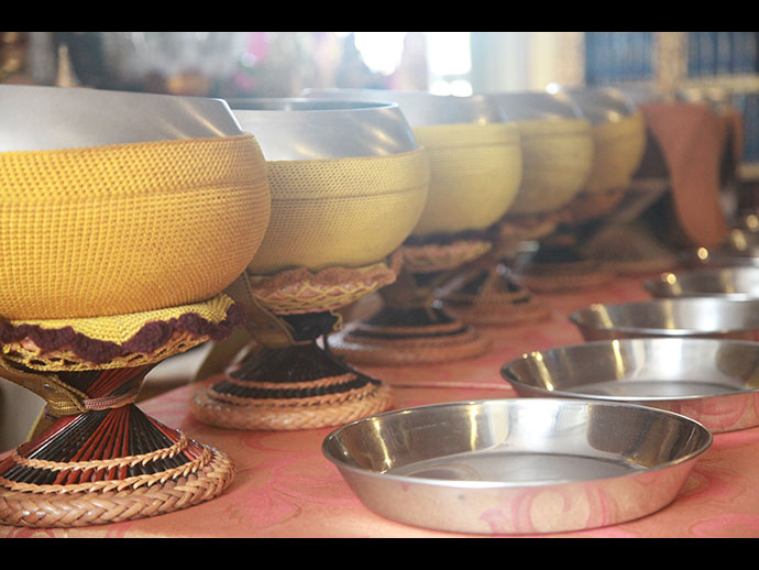 11:00 am. ทำบุญตักบาตรถวายภัตตาหารแด่พระภิกษุสงฆ์ / ร่วมแบ่งปันอาหารโรงทาน
