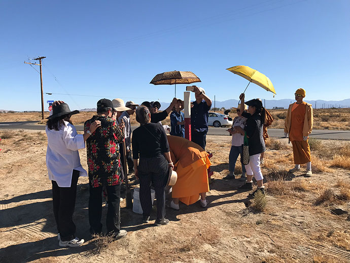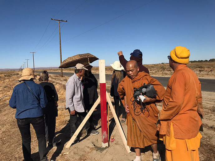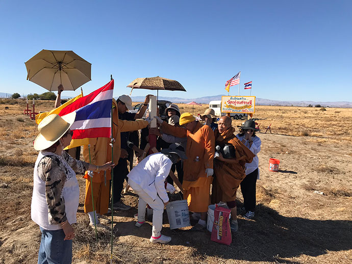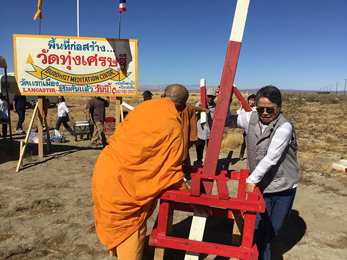 ภาพกิจกรรมปักเสากินข้าวห่อ ยกเสาเอกรั้วแก้วกำแพงวัดทุ่งเศรษฐี สาขาสอง ที่เมือง Lancaster California เมื่อวันเสาร์ที่ 28 ตุลาคม 2560 มีโยมหัวใจเพชรมาร่วมงาน 24 ท่าน และมีพระธรรมทูตสายต่างประเทศทั้งหมด 14 รูป รวม 38 ชีวิต ได้รับผ้าป่าในโครงการทอดผ้าป่ามหากุศล 2560 กอง วันนี้ได้ต้นบุกเบิก 36 ต้น (คราหน้าจะรวบรวมรายชื่อมาให้ร่วมด้วยช่วยสาธุ) ปักเสา ทั้งหมด 5 ต้น เตรียมไป 10 ต้น พระหมดแรงผสมปูน พอดีปูนก็หมดมือ)