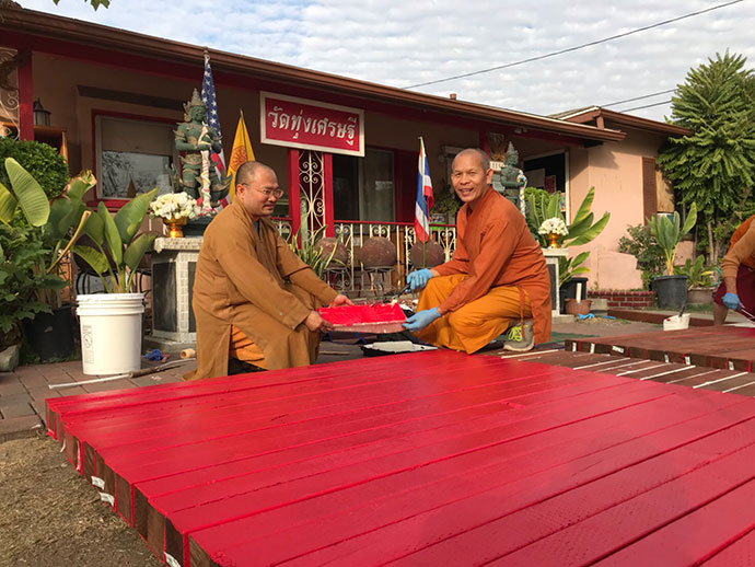4) ท่านพระอาจารย์สมเพียร เจ้าอาวาสวัดพุทธสันติธรรม เมืองเมอริต้า ที่เมตตาอนุญาตให้ท่านพระอาจารย์มหาถวิล ท่านพระอาจารย์โจเซฟ พระในสังกัดจำนวน 2 รูป ไปช่วยงานสาธารณูปการร่วมกับคณะสงฆ์วัดทุ่งเศรษฐี