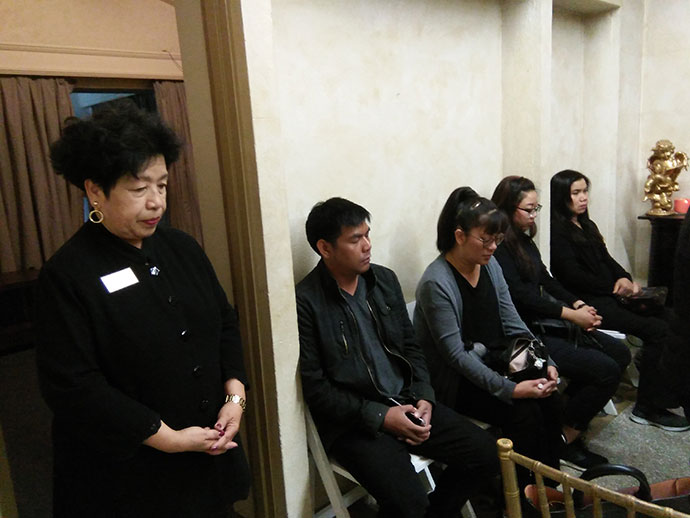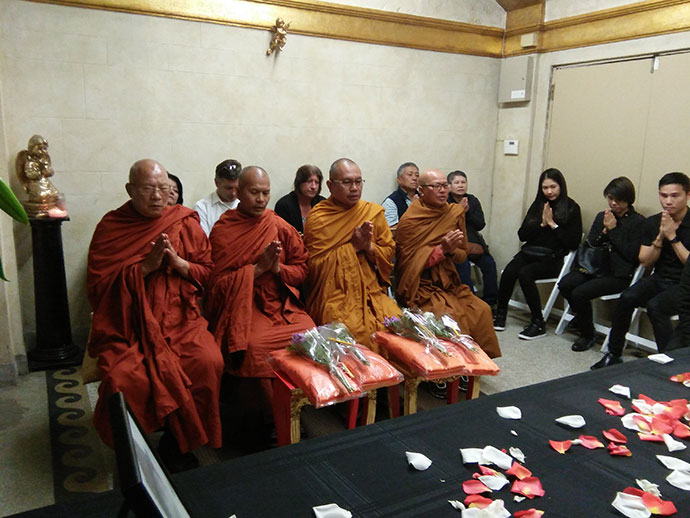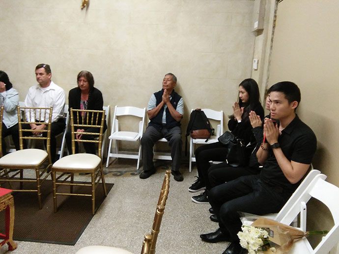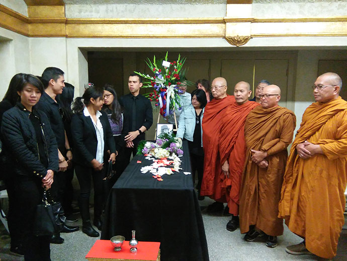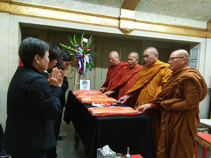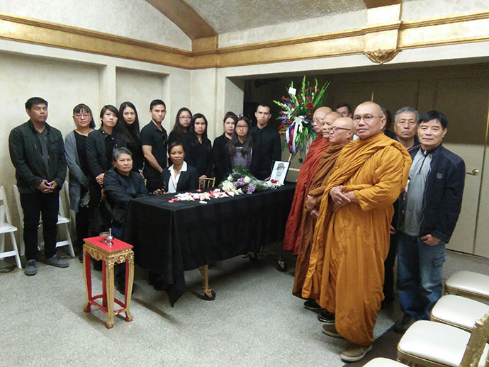ศาสนาสงเคราะห์ วันนี้ปฏิบัติศาสนกิจ ที่สุสานฮอลลีวูดฟอร์เอฟเวอร์ งานส่งสะการ ฌาปนกิจศพไม่มีญาติ ไม่มีพี่น้อง ที่มีผู้มาร่วมงานมากมายหลายท่านนั้น ล้วนเป็นเพื่อนร่วมงาน บางครั้งบางทีการพลัดบ้านเกิดเมืองนอนมาแสวงโชคในต่างแดนนั้น ก็ยอมรับหัวใจของทุกท่านที่ยืนหยัดสู้ชีวิต เพื่อตนเองเพื่อครอบครัว การพลัดพรากจากกันอย่างไม่มีวันหวนกลับ ต้องพึ่งคนผู้อยู่เบื้องหลัง ให้คอยฝากฝีฝากไข้ ดูแลชีวิตหลังความตายตามสมควรแก่ฐานะ ขออนุโมทนาเพื่อนร่วมงานทุกคนทุกท่าน โดยเฉพาะคุณกัน ร้านศรัทธา เมืองซานต้า มอนิก้า ขอบคุณแม่วันผู้เป็นธุระประสานงาน เป็นผู้จัดการดำเนินการหลายสิ่งหลายอย่าง ด้วยจิตอนุเคราะห์เอื้อเฟื้อโดยธรรม พวกเราได้ทำหน้าที่โดยมนุษยธรรม ที่จะดูแลกันในวาระสุดท้าย ในฐานะเพื่อนร่วมงาน เราเป็นญาติกันทุกคน นั่นคือญาติโดยธรรม หลวงพ่อบุญพิทักษ์ วัดพุทธปัญญาเมืองโพโมน่า ท่านบอกว่า