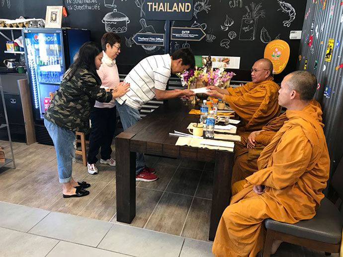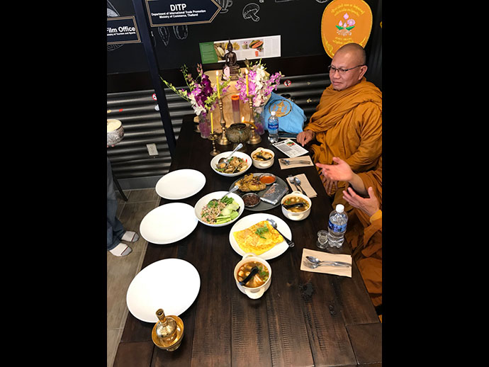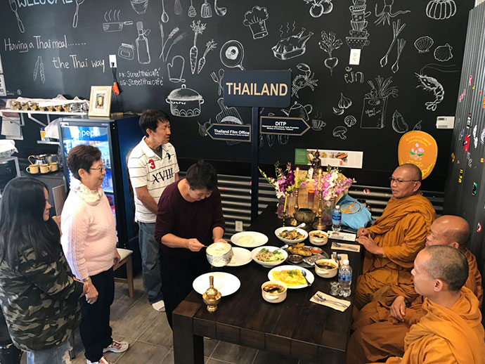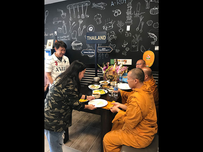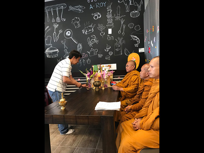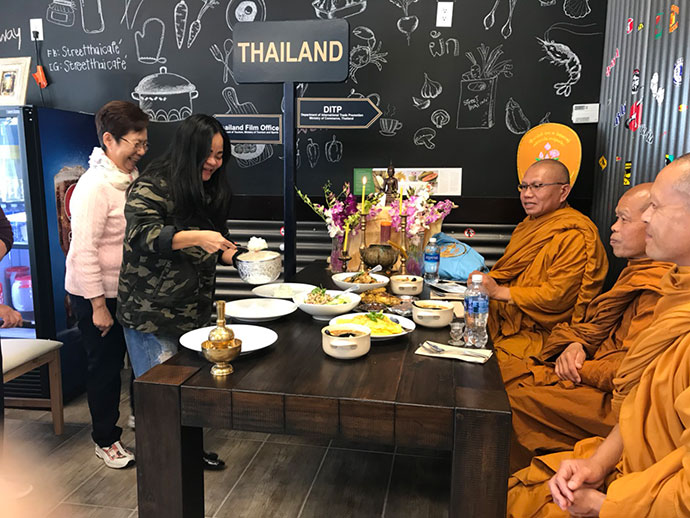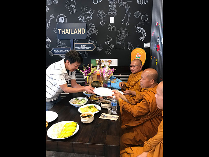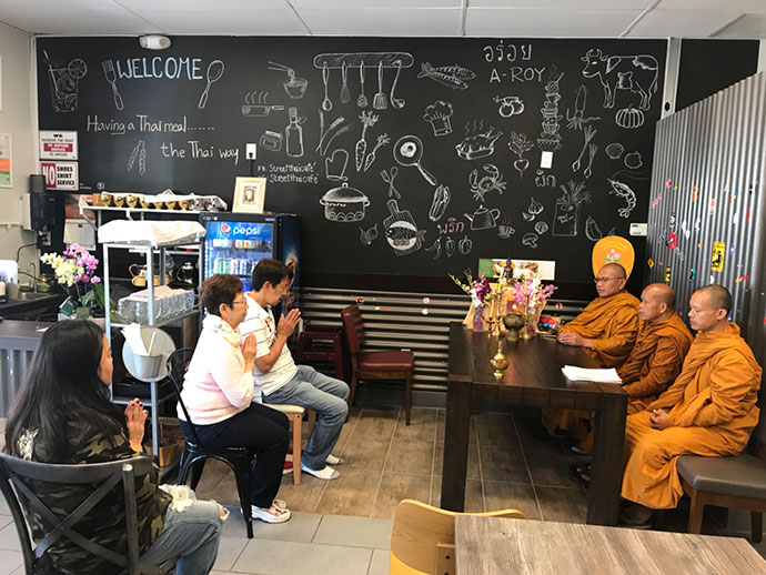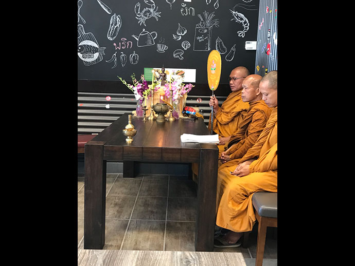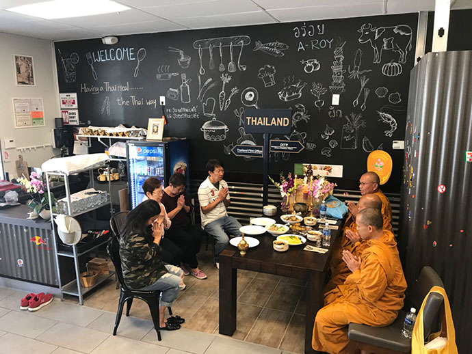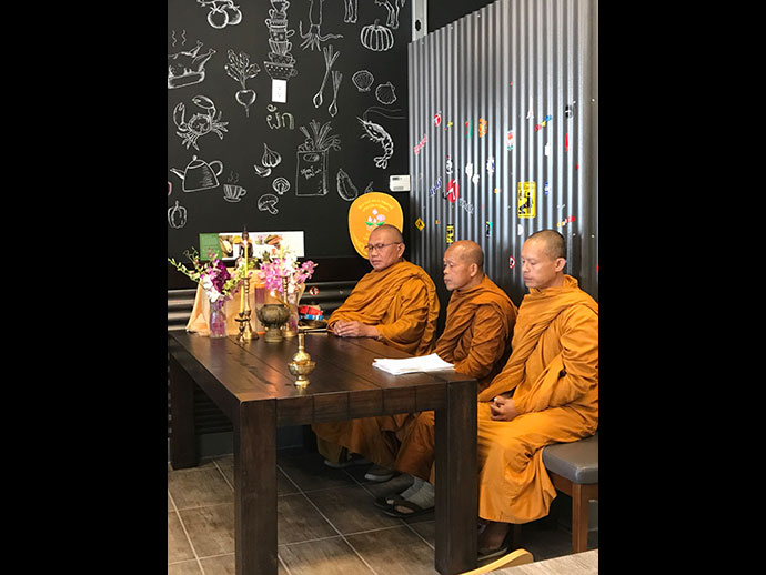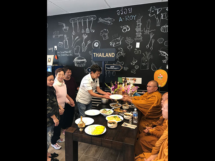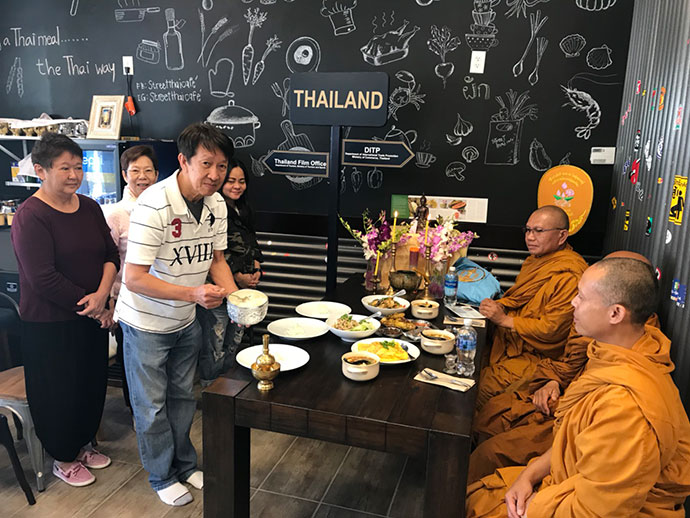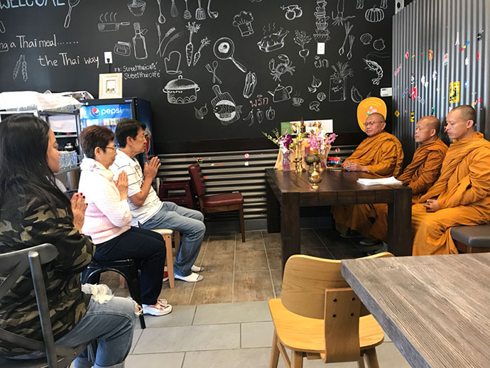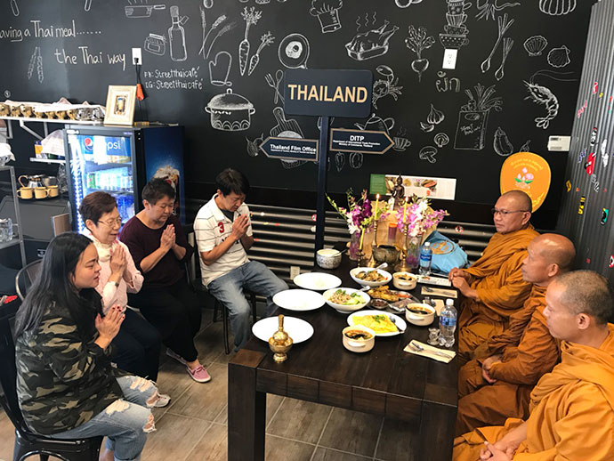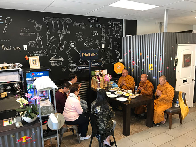 สัปดาห์ก่อนหลวงพ่อรับนิมนต์ไปฉันเพล ซึ่งตรงตามปฏิทินนั้นเป็นวันอาทิตย์ที่ 11 กุมภาพันธ์ 2018 ภัตตาคารชื่อ สตรีทไทยเช็ฟ โดยคุณพิสิษฐ์ / คุณชมพู่ ตั้งถาวร ได้นิมนต์ หลวงพ่อไสว ชมไกร เจ้าอาวาสวัดทุ่งเศรษฐี เมืองเลควูด พร้อมคณะพระสงฆ์ มีท่านพระมหาถวิล และท่านพระโจเซฟ รวม 3 รูป เพื่อถวายภัตตาหารเพลในวันมงคลทำบุญเปิดร้านใหม่