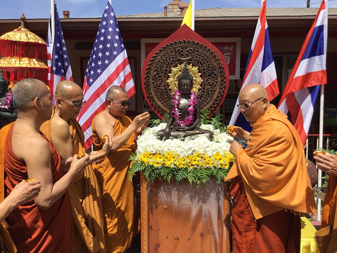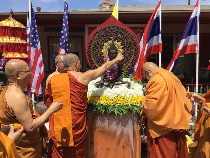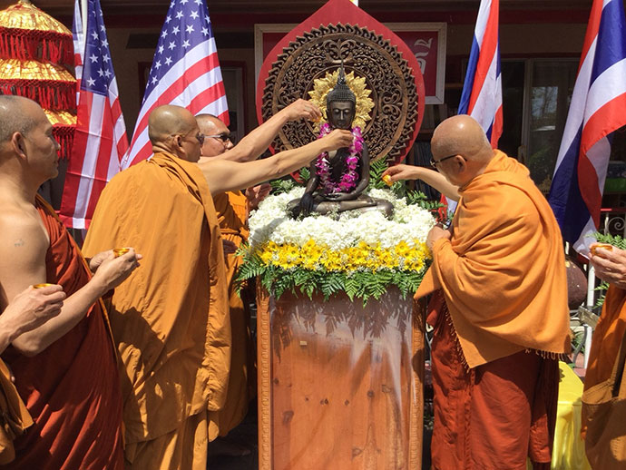 หลวงพ่อเพชรมีชัย หรืออีกชื่อหนึ่งว่า "พระพุทธวชิรวิชัยประทาน" การอัญเชิญหลวงพ่อเพชรมีชัย ลงสรงน้ำในวันสงกรานต์ประจำทุกปี ซึ่งเป็นพระพุทธรูปคู่บ้านคู่เมืองมาแต่โบราณ เทศกาลปีใหม่ไทย เพื่อให้ประชาชนได้มาสักการบูชาและสรงน้ำในวันสงกรานต์ของวัดทุ่งเศรษฐี แคลิฟอร์เนีย นั้น เริ่มเมื่อปี พ.ศ.2555 โดยเป็นปีที่ได้อัญเชิญมาจากประเทศไทย เพื่อมาประดิษฐานเป็นพระประธานของวัดทุ่งเศรษฐี เพื่อความเป็นสิริมงคล และเป็นขวัญกำลังใจในโอกาสเฉลิมฉลองปีใหม่ไทย ดังนั้น ทุกวันสงกรานต์เราจึงได้สรงน้ำหลวงพ่อเพชรมีชัย ปีละครั้ง และถือเป็นประเพณีสืบต่อกันมาจนปัจจุบัน