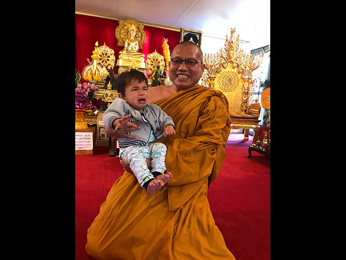 หรือพิธียกลูกให้พระ (หมายถึงพระสงฆ์) หลวงพ่อเข้าใจว่ามีมาตั้งแต่ครั้งพุทธกาลแล้วนะ ถ้าจำไม่ผิดคิว่ามีเล่าไว้ในอรรถกถาธรรมบท (ธัมมปทัฏฐกถา) เดี๋ยวจะนำมาเล่าให้ฟัง และโบราณบัณฑิตก็น่าจะผูกโยงมาจากเรื่องนี้กระมัง ตอนที่หลวงพ่ออยู่เมืองไทย ที่เมืองหล่มสัก นังหวัดเพชรบูรณ์ ก็เคยมีญาติโยมนำลูกมาถวาย ทั้งเป็นเด็กชายและทั้งเป็นเด็กหญิง แต่ส่วนมากเป็นเด็กผู้ชาย ที่พูดได้เต็มคำ คือ หลวงพ่อประสบมาด้วยตนเอง (ความจริงคือไม่มีลูกจริง ๆ กับชาวบ้านเขา มีแต่ลูกที่ชาวบ้านเขายกให้ ทำให้หลวงพ่อรักทุกคนเหมือนลูกเหมือนหลานจริง ๆ)