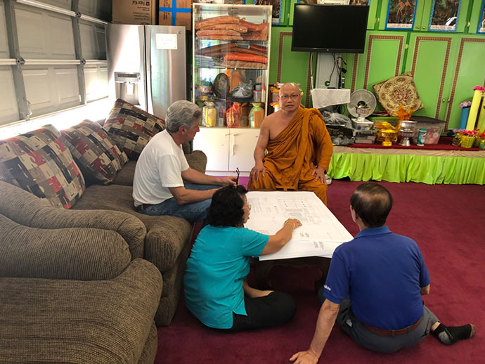 และต้องก้าวต่อไป คือคอยให้ทาง City of Lancaster อนุมัติ เห็นฝ่ายผู้ดำเนินการว่าคงใช้เวลาพอสมควรอยู่ อาจต้องกลับมาแก้บางส่วนซึ่งถือเป็นเรื่องปกติ หลวงพ่อก็ว่ามันท้าทายดี เหมือนทางไปพระนิพพานเลย ไม่มีอะไรที่ได้มาง่าย ๆ กว่าจะเข้าถึงพระนิพพานต้องบำเพ็ญบารมีอย่างมากโข เหมื่อนบางบุคคลที่สร้างบ้านที่อยู่อาศัย บางคนนั้นสร้างหรือแสวงหาทั้งชีวิตก็ไม่อาจสำเร็จ เป็นเรื่องธรรมดา ๆ ถ้าพระพิพพานไปกันง่าย ๆ ถ้าบ้านเรือนมีกันได้ง่าย ๆ คงสำเร็จกันไปหมดแล้ว นี้เป็นเรื่องธรรมดา