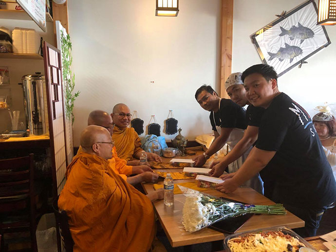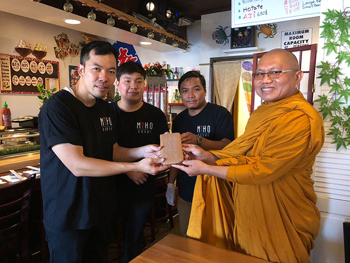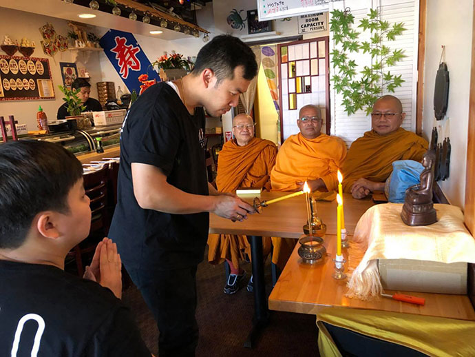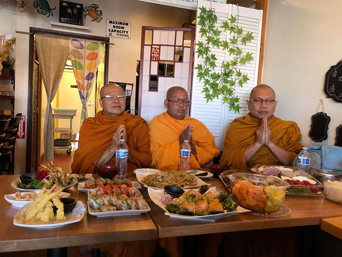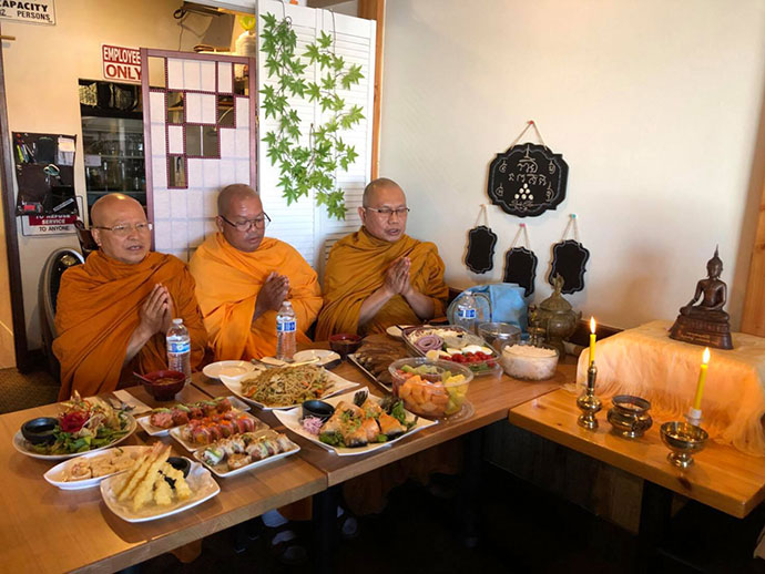 ขอเจริญพรขอบคุณขอบใจ ศรัทธาญาติโยมที่ได้นิมนต์คณะสงฆ์วัดทุ่งเศรษฐี เมืองเลควูด 3 รูป ไปประกอบมงคลพิธี ทำบุญเปิดร้านอาหารญี่ปุ่น เพื่อเจริญพระพุทธมนต์ และได้ถวายภัตตาหารเพลตามครรลองประเพณีไทย