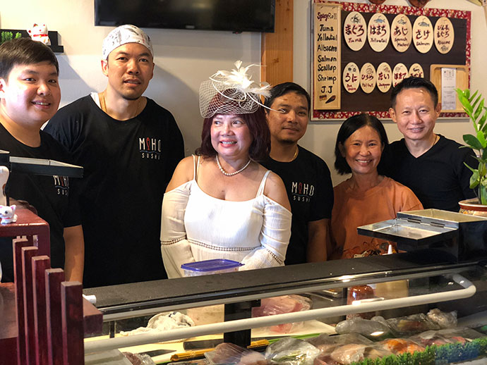 ร้านตั้งอยู่ในตำแหน่งดี มีที่จอดรถสะดวก เจ้าของร้านคือคุณแม่อุไรวรรณ เจริญชาสี เป็นผู้มีจิตใจโอบอ้อมอารีย์ สังเกตจากที่ติดตามใส่บาตรทุกวันเสาร์ เป็นประจำ ที่ Thailand Plaza Hollywood CA การสนับสนุนค้ำจุนพระพุทธศาสนา หลวงพ่อกล้าการันตีว่าลูกหลานจักจำเริญรุ่งเรือง โบราณบัณฑิตท่านกล่าวไว้อย่างนั้น หลวงพ่อได้เห็นความสุขบนใบหน้าคุณแม่อุไรวรรณ ปลื้มจิตปลื้มใจเป็นที่หนึ่งกับลูก ๆ ทั้ง 3 คนมาก คือ คุณปิยะพงศ์ ศรีโพธิ์, คุณทัพเทพ แก้วทองเจือ, และคุณธนศักดิ์ สองเมือง ที่พร้อมใจกันเข้าครัวทำอาหารอย่างมีความสุข "การทำในสิ่งที่รัก และการรักในสิ่งที่ทำ" ใครมีโอกาสผ่านไปก็ไปและกันนะ ร้านชื่อ "Miho Sushi" (คิดถึงความอร่อย คิดถึงมิโฮซูชิ) At Location : 18373 Ventura Blvd., Tarzana, CA 91356 Tel : 818.708.3220 สาธุขอให้จำเริญรุ่งเรือง รูปขอจำเริญพร