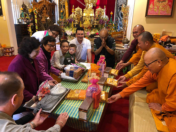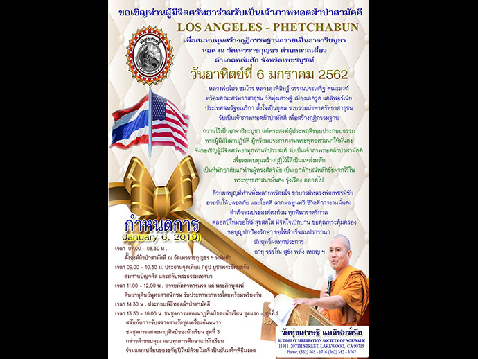 หลวงพ่อจะไปสร้างบุญ ไปสร้างกุฏิกัมมัฏฐานไว้ที่วัดบ้านเกิดนะ จากเมืองไทยมา 17 - 18 ปี ปลวกมันกินไม้ผุพังหมด ขอโอกาสแจ้งศรัทธาผู้ร่วมบุญมา ณ โอกาสนี้ และขออนุโมทนาศรัทธาทุกท่านถวายปัจจัยร่วมบุญบริจาคสมทบทุนมา เบื้องต้นมีรายนามดังนี้