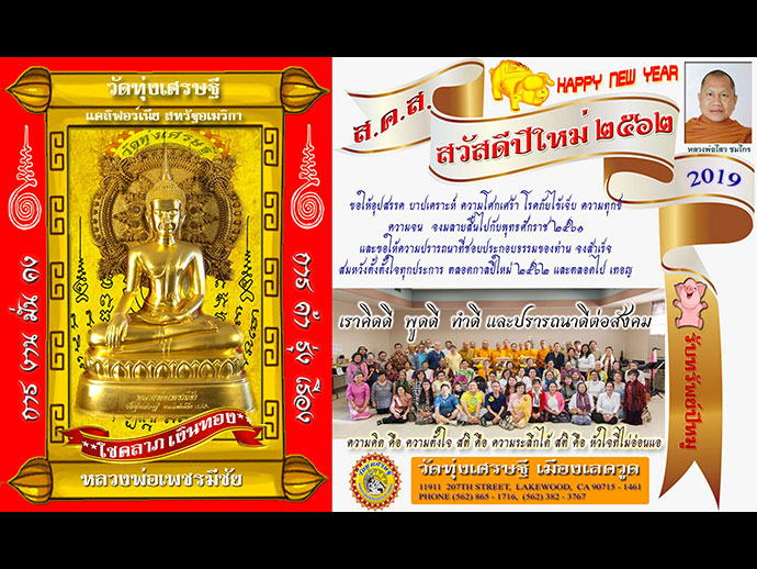 อีกประการหนึ่ง ขออนุโมทนาเจ้าภาพผู้ร่วมสร้างกุฏิกัมมัฏฐานกับหลวงพ่อไสว ชมไกร โดยจะเดินทางนำกองบุญไปสร้างถวายไว้ที่วัดบ้านเกิด (เมืองหล่มสัก) กำหนดการทอดถวาย วันอาทิตย์ที่ 6 มกราคม พ.ศ.2562 จะมีการถ่ายทอดสดทาง Face book live Channel : Wat Thonhsethi CA