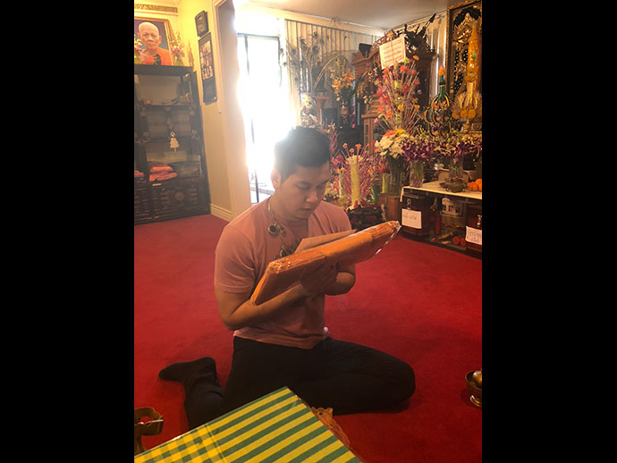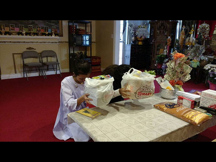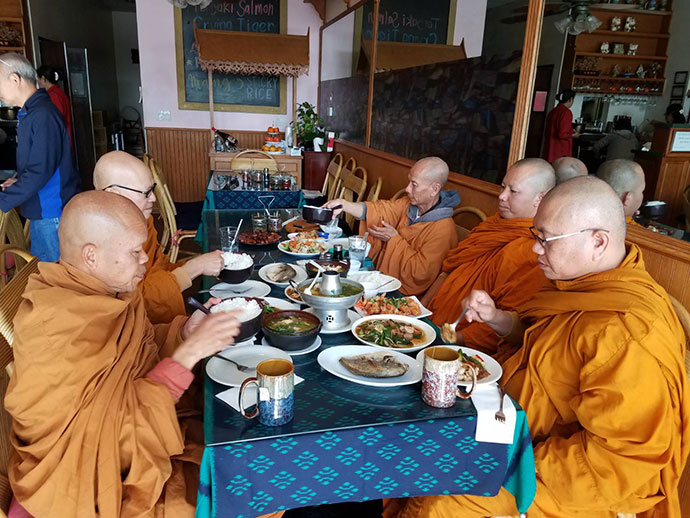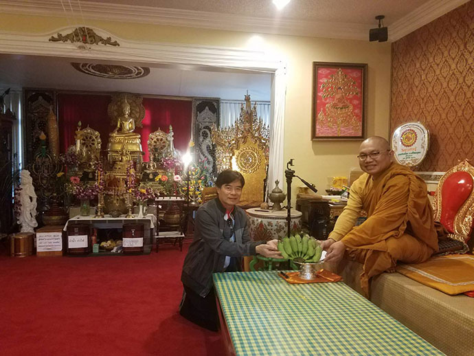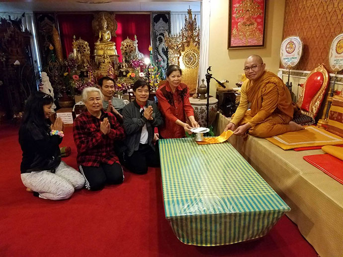 ขออนุโมทนาคุณป้าพะเยาว์ ชอบชม คุณลินดา, คุณพ่อกมล เทียนเพ็ง, คุณแม่มาลี ยามาท, เจ้าภาพถวายภัตตาหารเพล, คุณอรทัย อังสโวทัย Essential Thai Cuisine 2415 W Lincoln Ave H, Anaheim, CA 92801 Phone: (714) 761-4585 เมื่อวันที่ 26 ธันวาคมที่ผ่านมา ได้นิมนนต์พระสงฆ์วัดทุ่งเศรษฐี เมืองเลควูดรับภัตตาหารเพลที่ร้าน