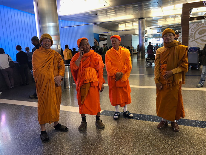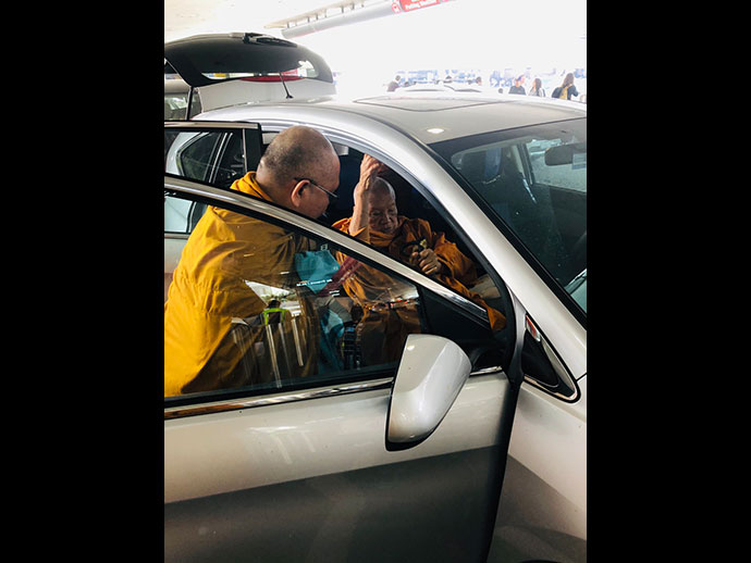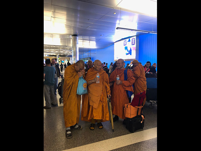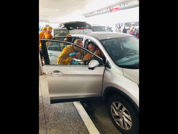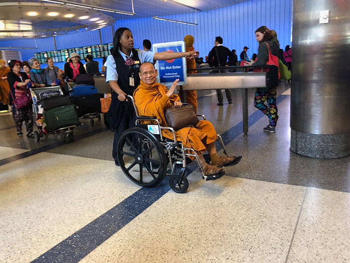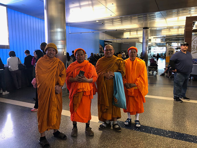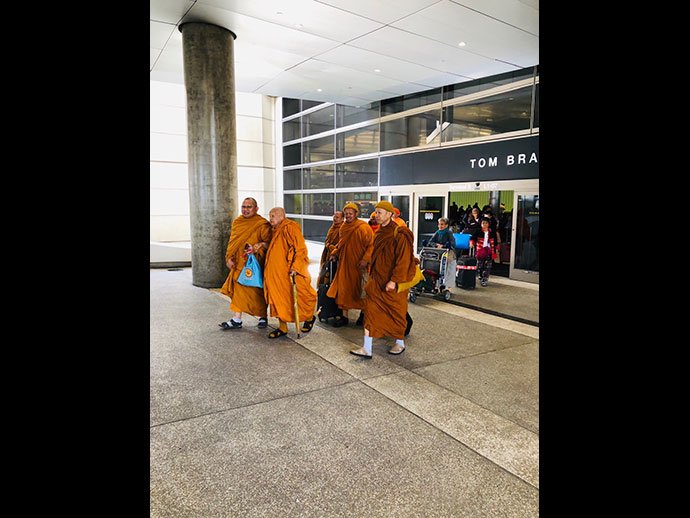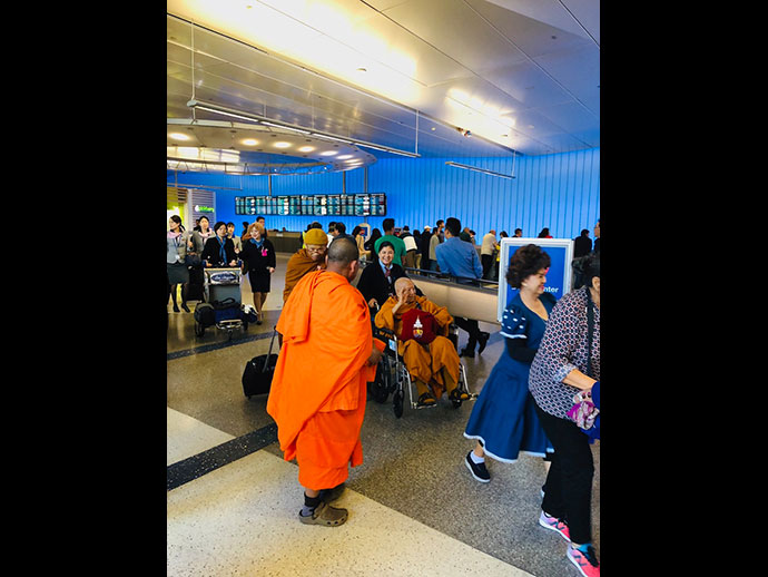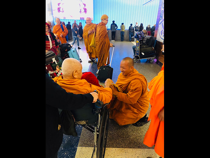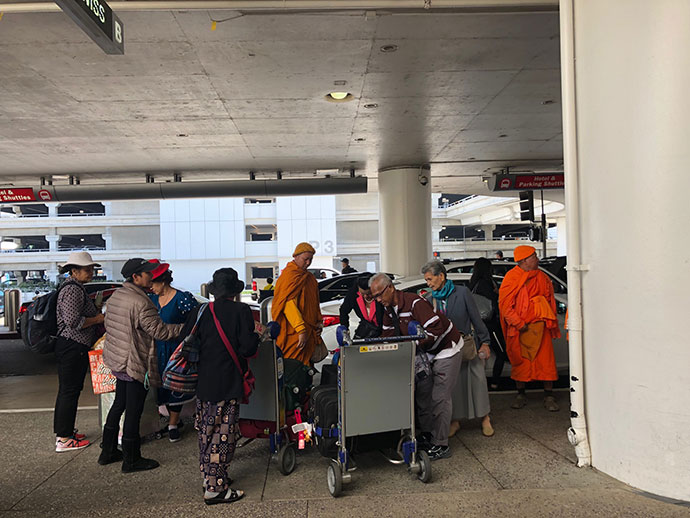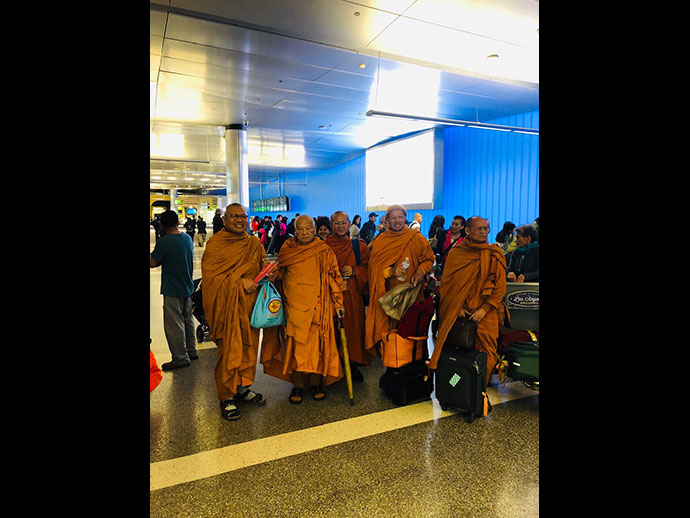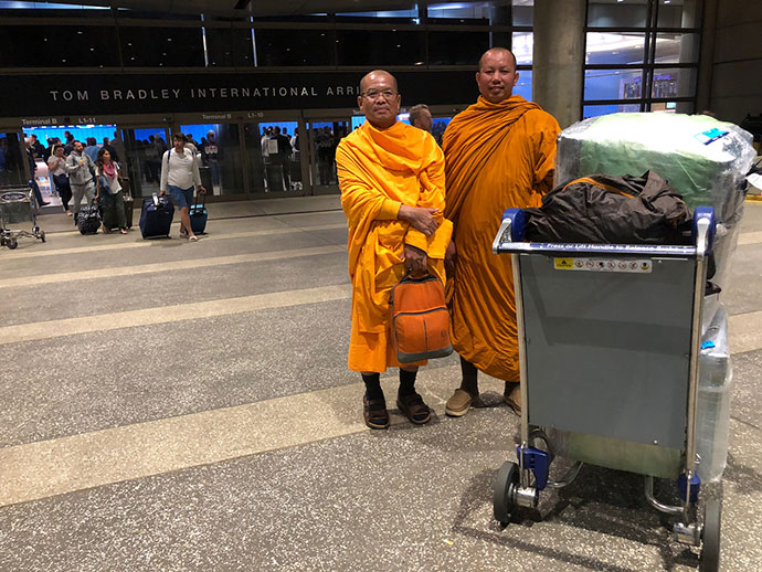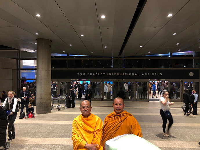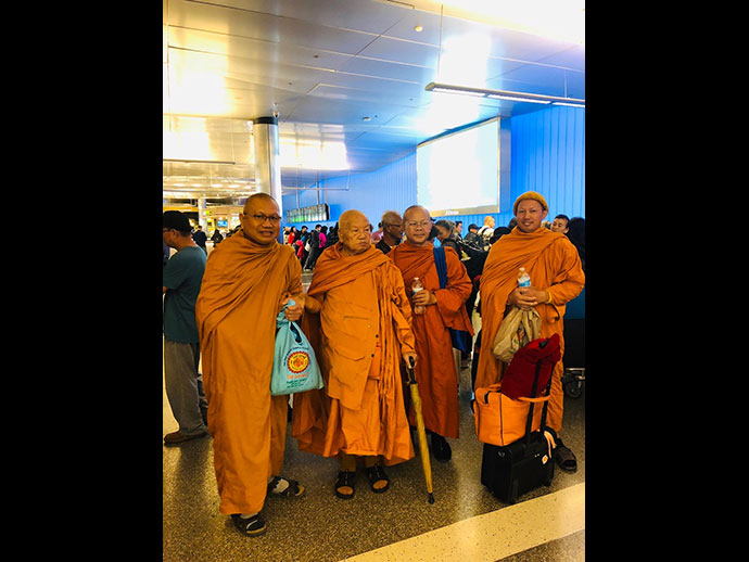 พร้อมคณะอุบาสก-อุบาสิกาผู้ติดตามจากเมืองขอนแก่น อีก 4 ท่านพระเดชพระคุณฯ พร้อมคณะผู้ติดตาม เดินทางจากสนามบินสุวรรณภูมิ ประเทศไทย มาถึงสนามบินลอสแองเจลิส แคลิฟอร์เนีย เมื่อวันที่ 27 มีนาคม 2562 เครื่องลงเวลา 9.50 น. โดยสายการบินฮ่องกงแอร์ไลน์ ศาสนกิจที่หลวงพ่อรับนิมนต์เพื่อมาร่วมงานบุญ ณ วัดพุทธธัมโม เมืองโมริโน่เวลเล่ย์ แคลิฟอร์เนีย โดยกำหนดการจัดงาน ในวันที่ 31 มีนาคม ศกนี้