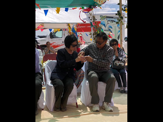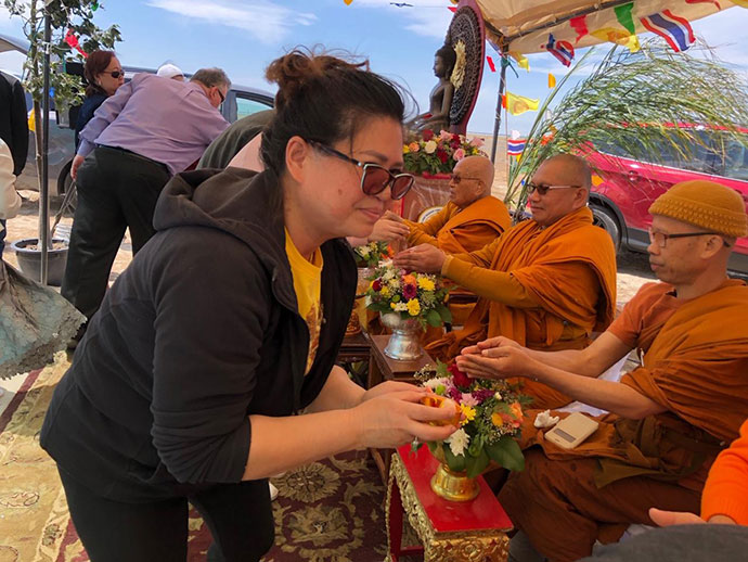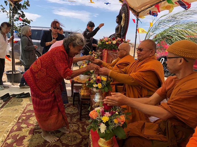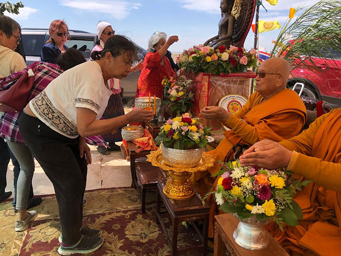 อีกทั้งพระเดชพระคุณ "พระธรรมวิสุทธาจารย์" ได้เดินทางไปเป็นประธานประกอบพิธีสวดถอดสวดถอน ทำพิธีรดน้ำแผ่นดิน จัดพิธีสงกรานต์ ทำบุญฉลองปีใหม่ไทย สรงน้ำหลวงพ่อเพชรมีชัย ที่เมืองแลงแคสเตอร์แล้ว
