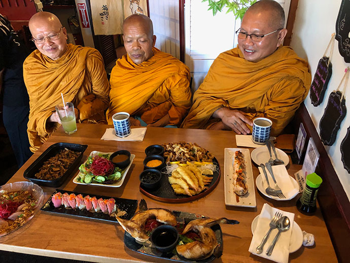 คณะสงฆ์วัดพระธาตุทุ่งเศรษฐี รับนิมนต์ไปฉันภัตตาหารเพลที่ บริษัท ยูนิคลี่ไทย เฟอร์นิเจอร์ เมือง Oxnard CA