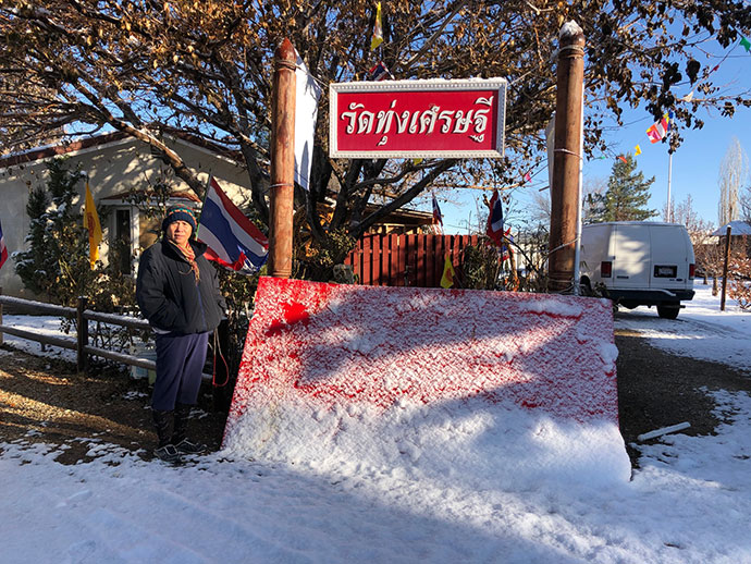 เจริญพรถึงท่านผู้มีใจเป็นกุศล ตลอดถึงสาธุชนผู้สนใจในธรรมทั้งหลาย ธรรมะสมสมัยฉบับนี้มารายงานตัวให้ทุกท่านทราบว่า ณ ท้องทุ่งกว้างแห่งเมืองแลงแคสเตอร์ มลรัฐแคลิฟอร์เนีย ประเทศสหรัฐอเมริกา สัปดาห์นี้ต้องเผชิญกับสภาพอากาศที่เปลี่ยนแปลงอย่างเฉียบพลัน จากอากาศที่ร้อน ๆ ที่กำลังเปลี่ยนผ่าน กับบันดาลฝนห่าใหญ่ให้ตกลงมาเพียงข้ามวัน ก็พลันกลายเป็นหิมะเต็มลานวัด บริเวณศาสนสถานลานธรรม