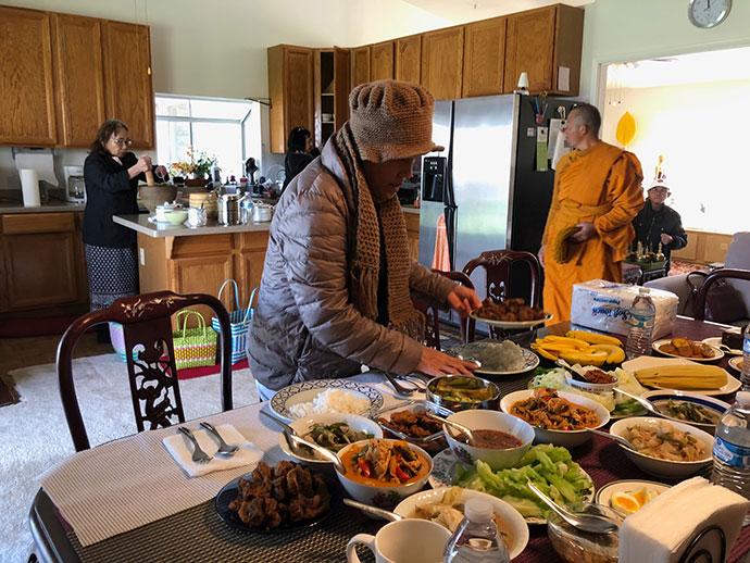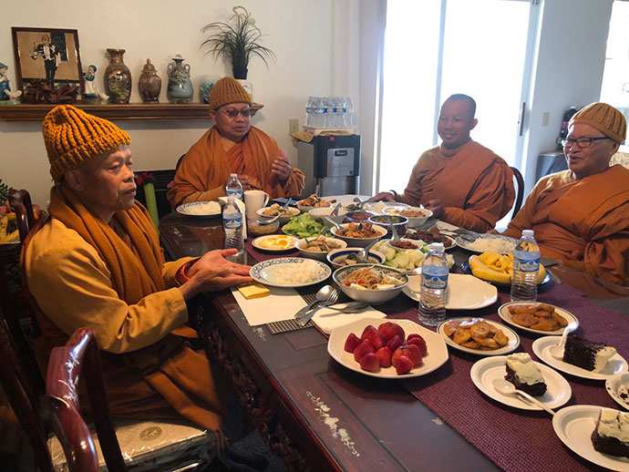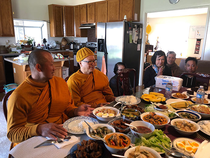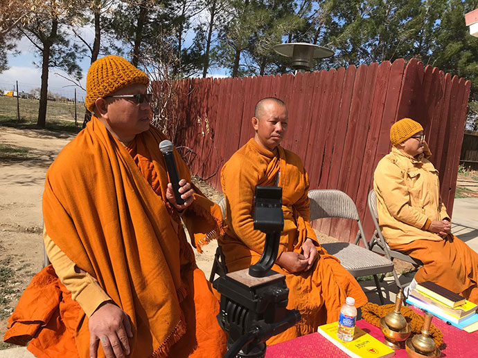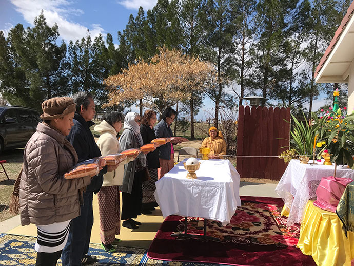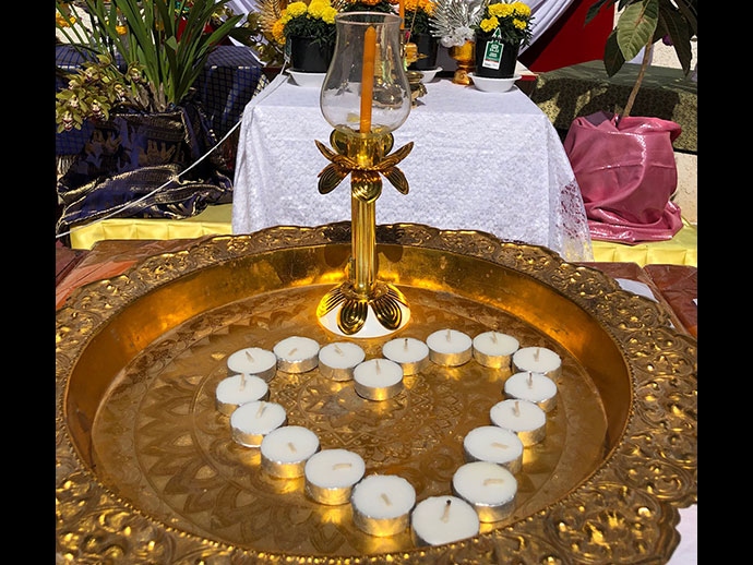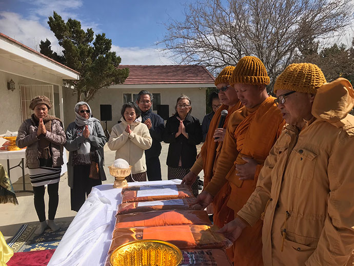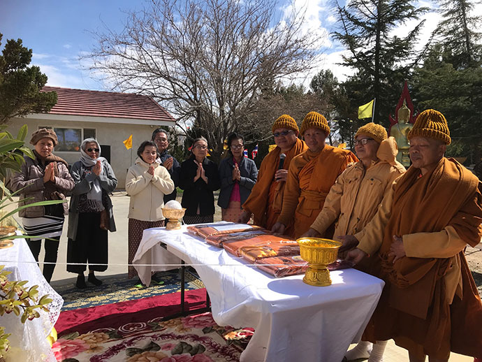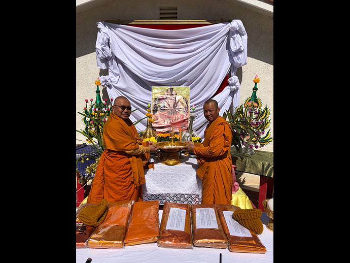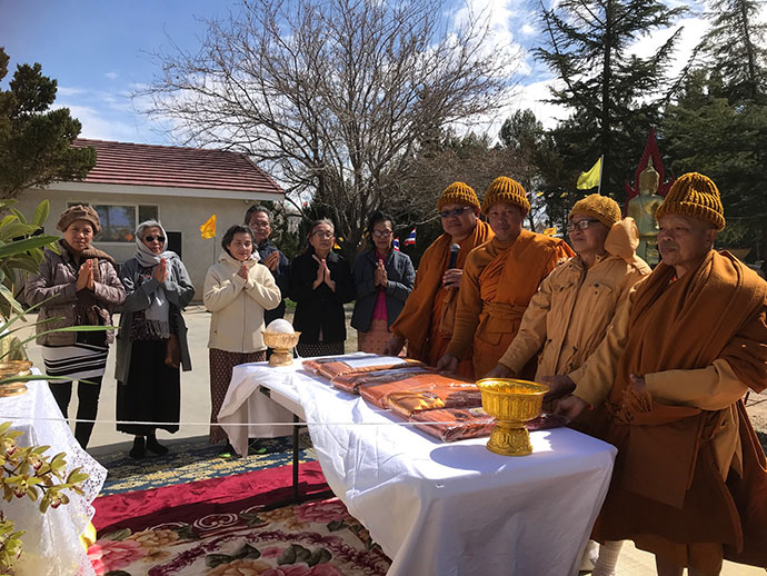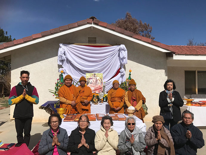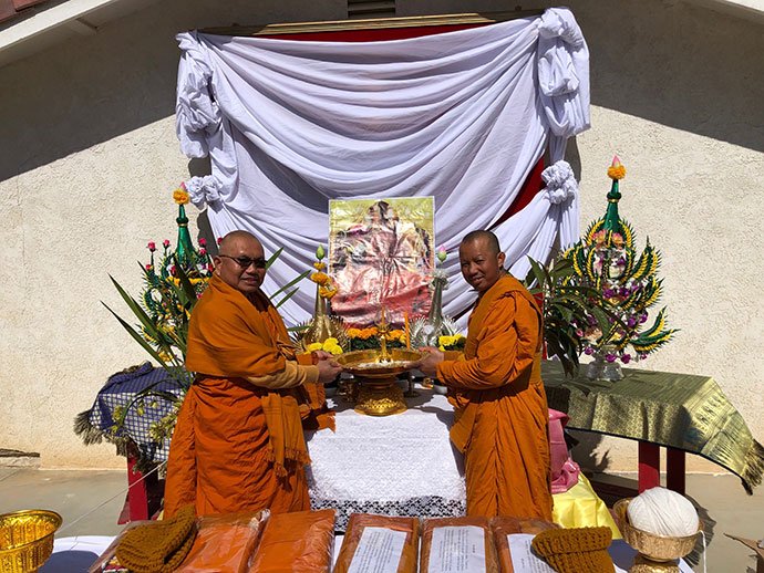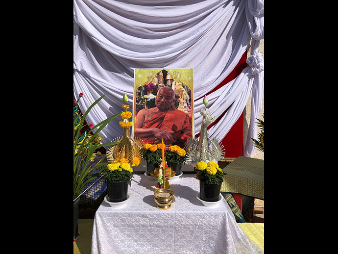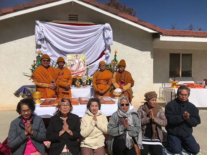 "...ขีณัง ปุราณัง นะวัง นัตถิ สัมภะวัง, วิรัตตะจิตตายะติเก ภะวัสมิง, เต ขีณะพีชา อะวิรุฬหิฉันทา, นิพพันติ ธีรา ยะถายัมปะทีโป, อิทัมปิ สังเฆ ระตะนัง ปะณีตัง, เอเตนะ สัจเจนะ สุวัตถิ โหตุ ฯ"