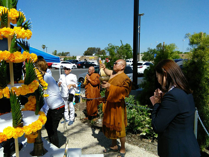 4) การรดน้ำขอพร เป็นการแสดงความเคารพ