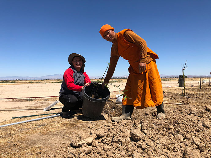 และจำได้ไหมเมื่อพฤศจิกายน ปี 2562 เราได้พร้อมใจปลูกต้นมะยมกัน 2 ต้น (ไม้มงคล) บัดนี้งามแล้ว (ไม่ใช่ ๆ ตายเรียบร้อยแล้ว) ฤดูนี้ทุกคนในพื้นที่เมืองแลงแคสเตอร์ ต่างลงความเห็นว่า เราควรปลูกต้นสนกัน แต่สำคัญว่า เราต้องซื้อต้นกล้าที่เขาเพาะชำไว้ ต้นเล็ก $7 แต่มันคงเห็นผลช้ามาก ถ้าได้ต้นกล้าที่ใหญ่ขึ้นคงเห็นผลงานภูมิใจในเร็ววัน แต่ก็ราคาแพงขึ้น 3-4 เท่าตัว ต้นละ $40 - 50 ก็ต้องค่อย ๆ คิด ค่อย ๆ เตรียมการให้ก้าวหน้าต่อไป ตราบใดที่ลมหายใจยังอยู่กับเรา ตราบนั้นเราจะไม่ละความเพียร นี่แหละการสร้างวัด