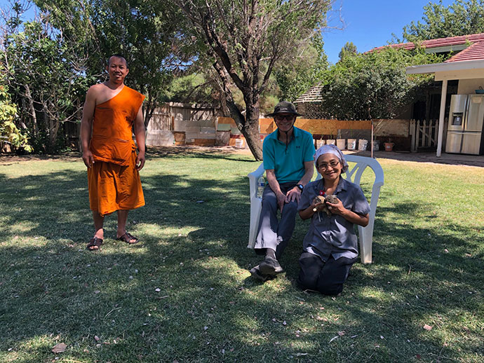 ขอขอบคุณอนุโมทนา คุณแม่แอนนา คุณน้องปิ๊ก คุณน้องปุ๊ก เอาต้นไม้มาปลูก (เป็นต้นมะเดื่อ) และเอาข้าวมาเลี้ยงไก่ แล้วใส่ใจช่วยปลูกต้นหม่อน ด้านหลังอีก 10 ต้น ฝ่าร้อนอย่างไม่ย่อท้อ และขออนุโมทนาเจ้าภาพที่ถวายพันธุ์ไม้มา คือครอบครัวนายช่างชาตรี เชยเอี่ยม ผู้เป็นช่างสร้างศาลาซุ้มเสมาเศรษฐีให้วัด ปลื้มในผลงานและบุญทานเพื่อให้ร่มเรา ดีใจได้ปลูกต้นไม้ แต่ไม่ปลื้มค่าไฟฟ้าเลย ค่าไฟเพิ่มขึ้นสูงตามมาด้วยจ้า ใครมีโอกาสแวะมาหยอดตู้บริจาคด้วยนะ
