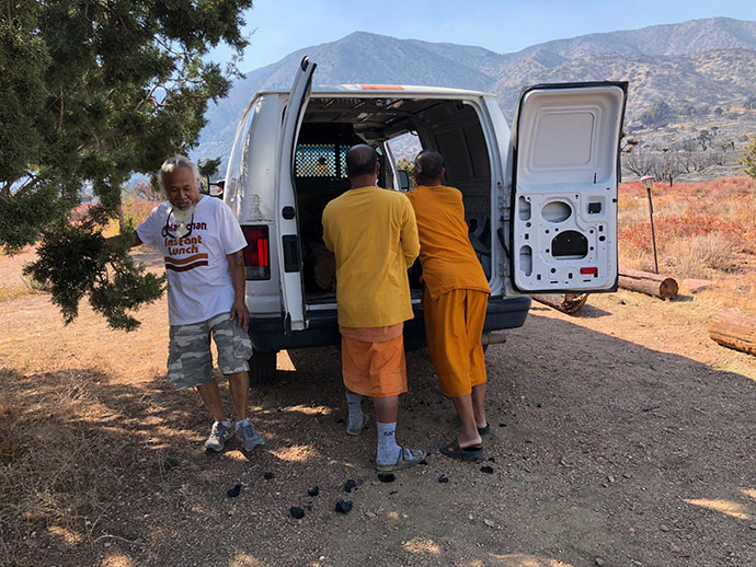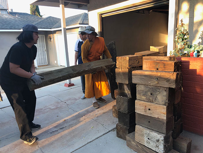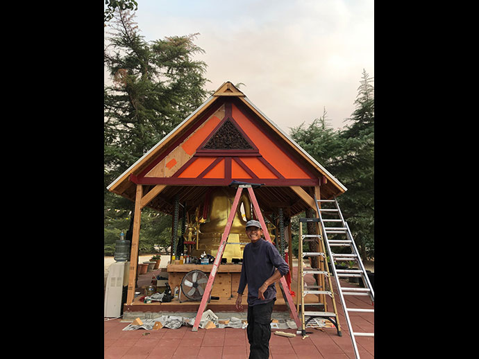 ส่วนนายช่างประจำของวัดเรา คือคุณโยมชาตรี เชยเอี่ยม ก็แสตนบายอย่างเต็มกำลัง เต็มศรัทธา จนทางครอบครัวให้ฉายาสนุก ๆ กันว่า "ลูกผู้ชายหัวใจถวายวัด หรือสั้นๆ คือ คนหัวใจวัด" สาธุๆ อนุโมทนาบุญใหญ่ ปลื้มใจด้วยโยมเอ้ย...นี่หละการได้ร่วมสร้างวัดวาศาสนสถาน ทุกครั้งที่ทุกคนได้มาใช้สอยประโยชน์ ได้มาพึ่งมาพัก อานิสงส์ก็เกิดทุกครั้ง ได้บุญทุกครั้ง และอีกประการหนึ่งฝากมาตลอดเรื่องบุญพิเศษ พิธีทอดผ้ากฐิน 9 สาย 9 ไตร ก้าวหน้า ก็ได้รับการตอบรับมาจากคณะสงฆ์ศูนย์ปฏิบัติธรรมธรรมจาริก สังฆวิหาร นครลอสแองเจลิส ท่านพระครูพิศาลธรรมจารี และการตอบรับมาจากท่านพระอาจารย์สงวน เจ้าอาวาสวัดพุทธมงคล เมืองลองบีช คณะสงฆ์จากวัดพระธาตุบัวหลวงไทย เมืองเทฮาชาปี ได้ปวารณาไว้จะพาญาติโยมมาร่วมบุญ กราบอาราธนามา ณ โอกาสนี้ครับ และกราบขอบพระคุณมาพร้อมนี้ด้วยความเคารพ