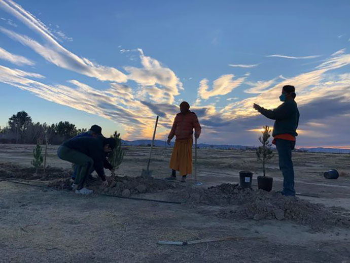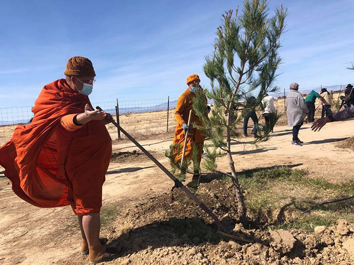 ท่านสาธุชน ผู้มีความสนใจในธรรมทั้งหลาย โครงการเล็กๆ พี่น้องเราได้ร่วมทำร่วมบุญปลูกต้นสนที่วัดพระธาตุทุ่งเศรษฐี เมืองแลงแคสเตอร์ แคลิฟอร์เนีย เมื่อวันอาทิตย์ที่ 28 กุมภาพันธ์ 2564 ที่ผ่านมา ดูว่าเป็นโครงการเล็กๆ แต่ไม่เล็ก ด้วยเหตุว่าต้นกล้าไม้สนที่นำมาปลูกนั้นเป็นสนสายพันธุ์ใหญ่มาก จะมีอายุยืนต้นไปหลายร้อยปี อีกทั้งโครงการปลูกสน 100 ต้นนั้นปลูกจริงๆ ก็เกินร้อยต้น วันหนึ่งในอนาคตข้างหน้า เมื่อต้นสนโตขึ้นจักให้ร่มเงาร่มเย็นเป็นร่มอารามเก็บรักษาความอุดมสมบูรณ์ให้ท้องทุ่งทะเลทรายที่แห้งแล้ง ให้ชุ่มชื้น ชุ่มฉ่ำ และชุ่มเย็น