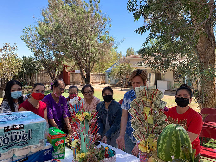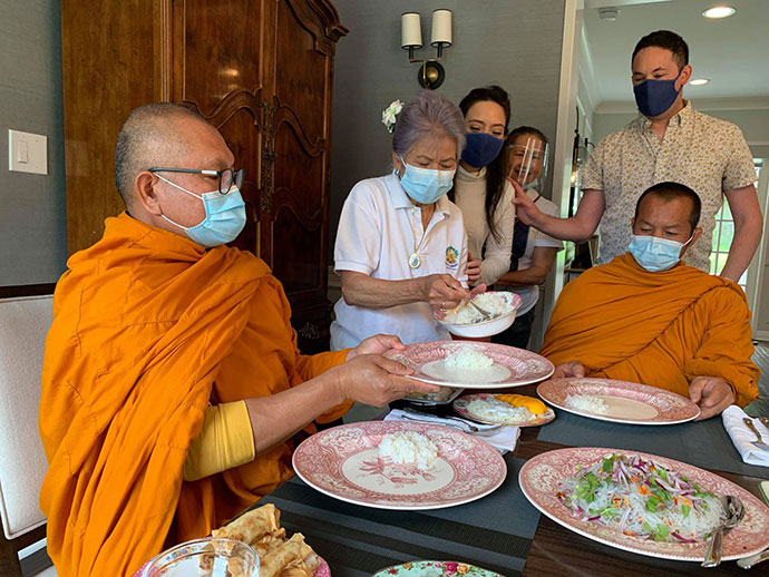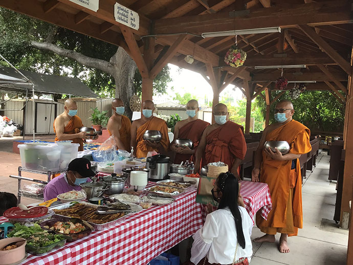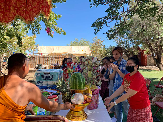 ขออุโมทนา ขอขอบน้ำใจคุณโยมใหญ่เจ้าของร้านเดอะภูเขา ณ นครลอสแองเจลิส และศรัทธาพุทธศาสนิกชนที่รวมตัวกันจัดกิจกรรมใส่บาตรถวายภัตตาหารแต่พระสงฆ์ อุบาสกผู้ถวายความสะดวกโดยแสดงถึงผู้มีน้ำใจ ทำหน้าที่จิตอาสา บาลีว่า ผู้มีธรรมชื่อว่า เวยยาวัจกิจ ผู้ทำความขวนขวายในธุระแทนพระสงฆ์