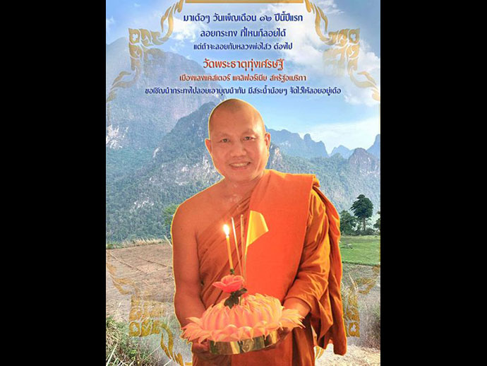 ขอเชิญร่วมบุญลอยกระทง ณ วัดพระธาตุทุ่งเศรษฐี เมืองแลงแคสเตอร์ กำหนดการวันอาทิตย์ที่ 21 พฤศจิกายน พ.ศ.2564 กำหนดการเรียบง่ายใส่ใจพิเศษ เพื่อรักษาส่งเสริมประเพณีอนดีงาม และวัฒนธรรมล้ำค่า ท่านที่ปวารณามาเลี้ยงภัตตาหาเพลก็ภาคเช้าให้เบิกบานแจ่มใสได้บุญล้ำ ส่วนภาคค่ำก็เริ่ม 4 โมงเย็นถึง 2 ทุ่ม ได้ร่วมลอยกระทงกันประชันแสงเสียงให้ดูพองาม "ขอขอบน้ำใจคุณอุ้ย ครอบครัวคุณบอย และเพื่อนๆ รับเป็นธุระทำกระทงทั้งหมดเพื่องานนี้ เตรียมพบกันที่...วัดพระธาตุทุ่งเศรษฐี แคลิฟอร์เนีย"